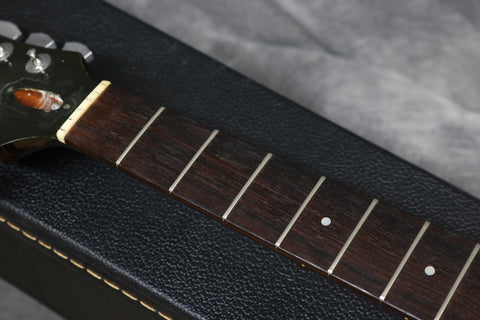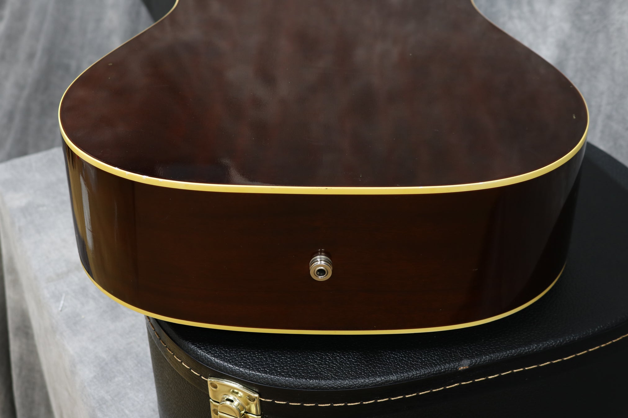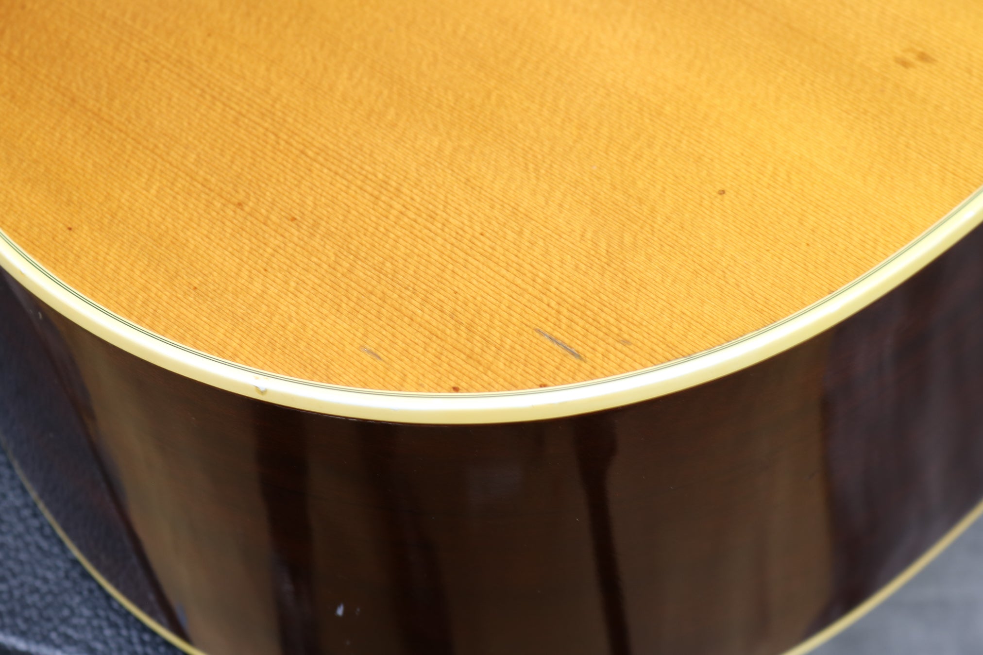 There are a number of small dings/marks in the finish on the front, back and sides. There's light wear to the back of the neck and headstock. The neck is straight and the frets are in excellent condition with very little wear. This Beautiful guitar has great tone, with a rich and full bottom end and can take a good hard attack with the typical clarity that you get with Mahogany back and sides.