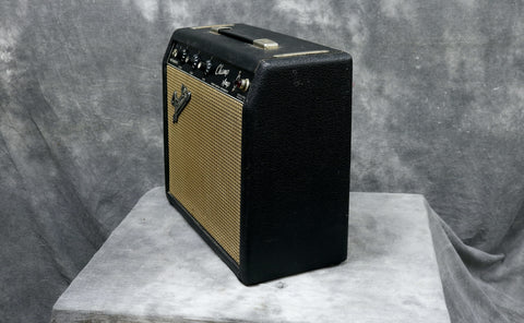 It has a sparkling clean tone which goes into lightly compressed overdrive once the volume is pushed beyond 5. There are some small scuffs in the tolex mainly on the back and a couple of small nicks in the grille cloth.