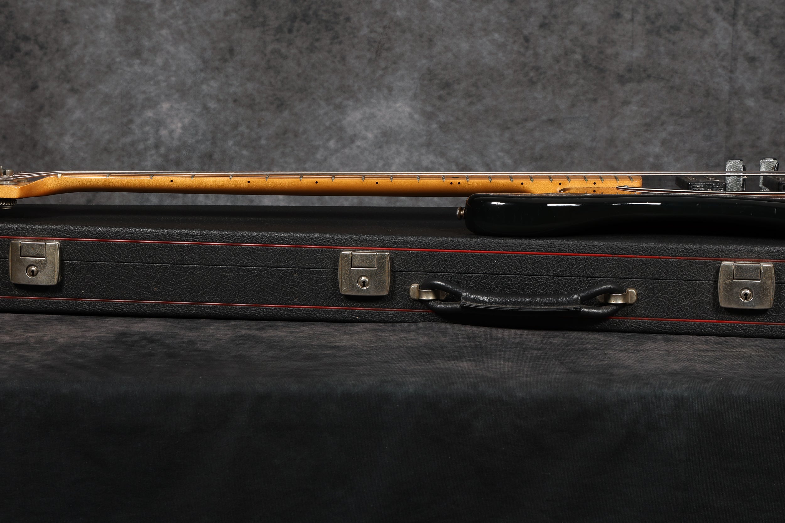 The finish is in excellent condition overall, with just a few small patches of wear around the edges and on the back of the horns. There's light buckle rash and some rusting to the metalwork. The neck, fretboard/frets and headstock are extremely clean.
