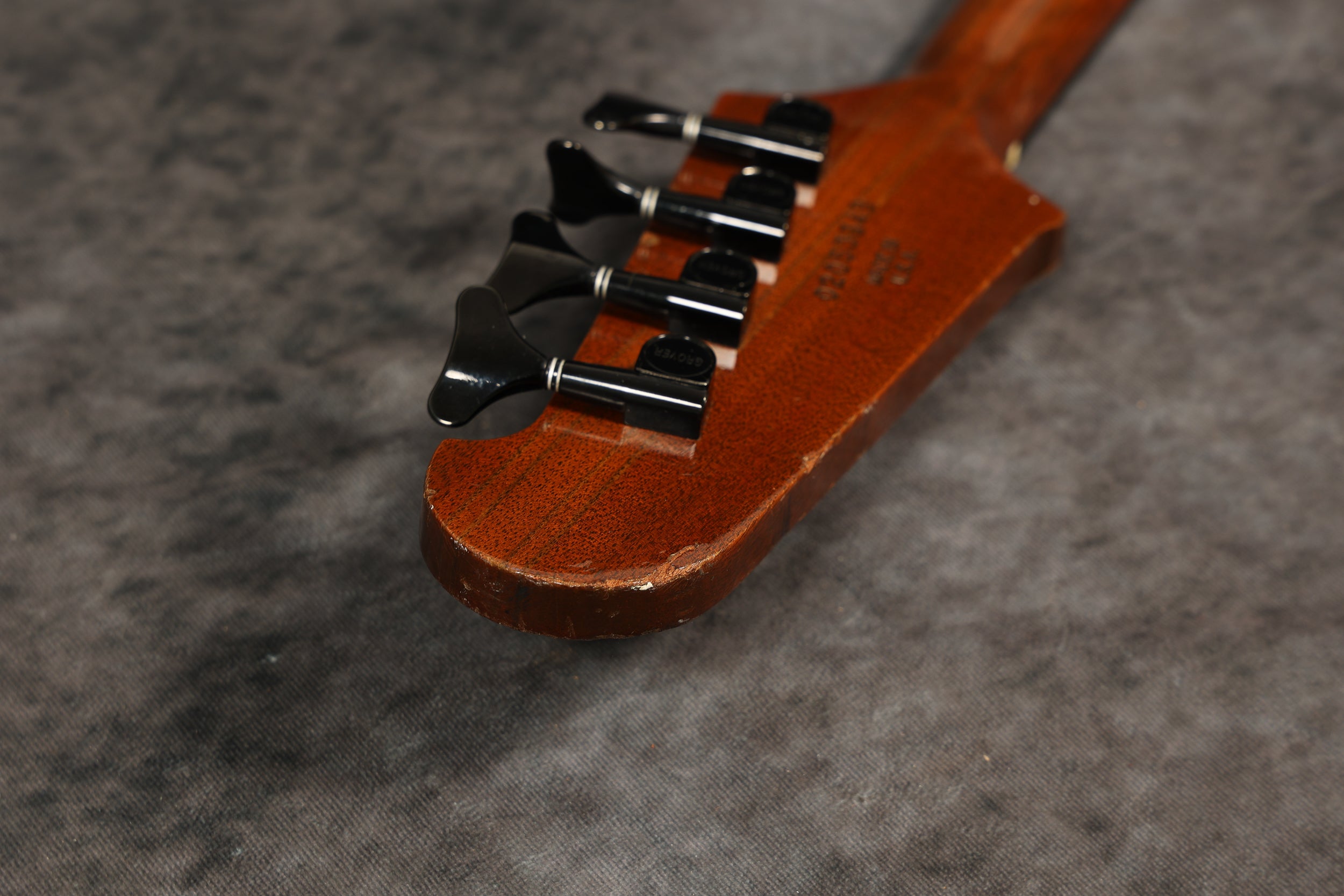 This Thunderbird has a mahogany body and neck with through-neck construction. It has a 34" scale length, Grover tuners and 2 humbuckers. It's been fully set up in our workshop with a set of round-wound strings and great action. All round excellent bass. Serial number:02053349. Weight: 8 lbs 13.5 oz/ 4.14 kg. Nut width: 38.8mm. Depth at 1st fret: 21 mm.