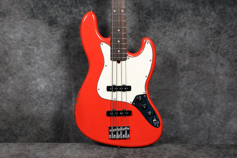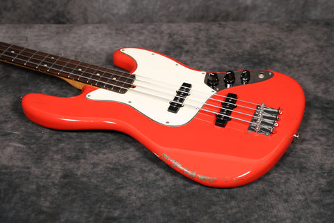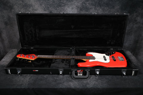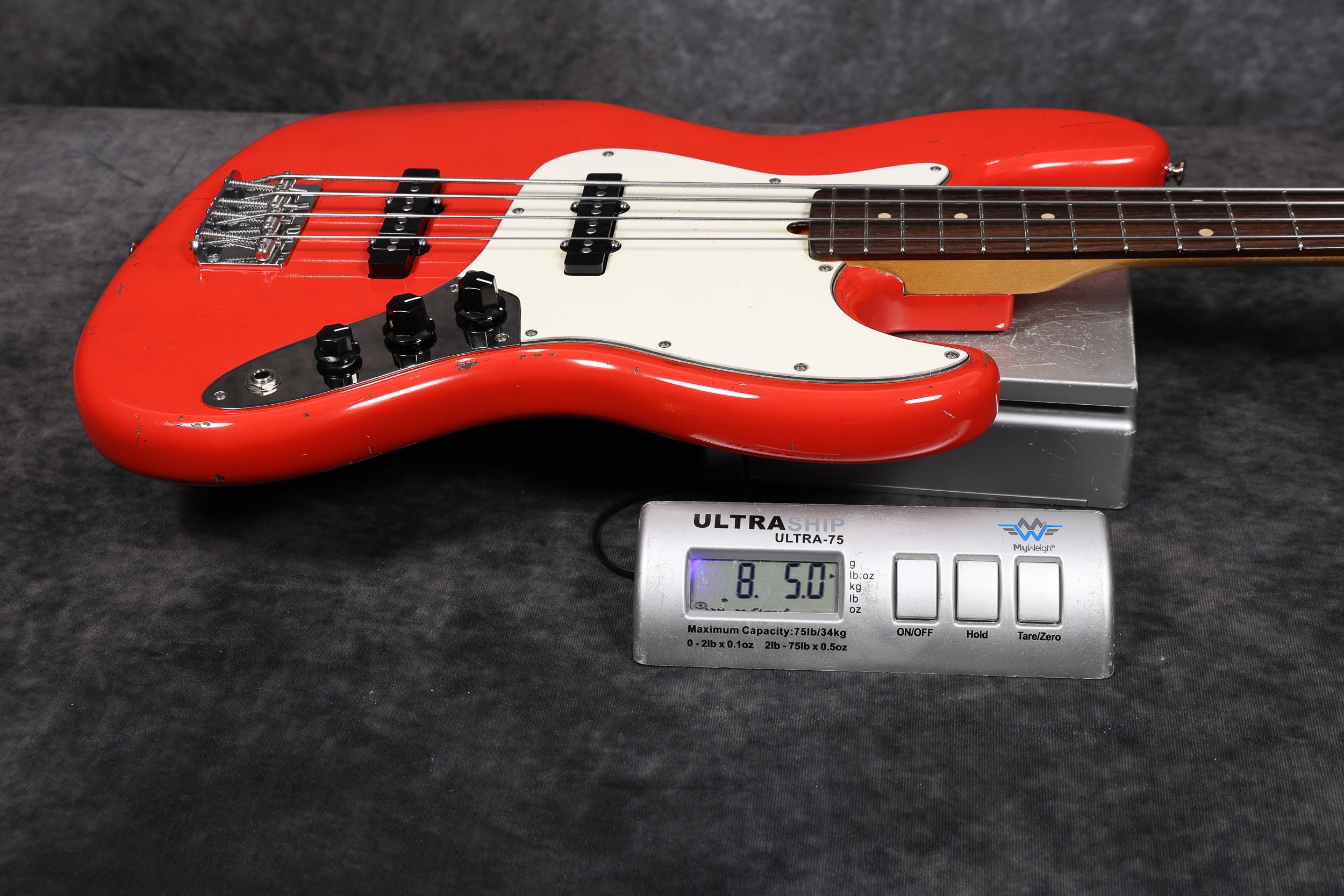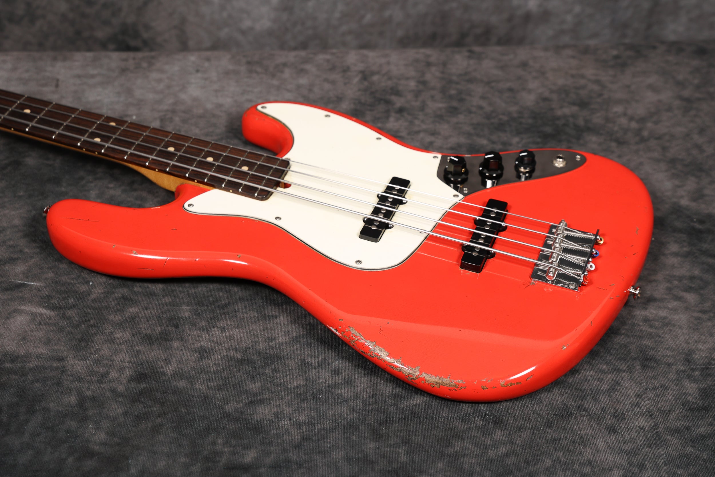 Brand new Olinto 4-String J in Fiesta Red relic with a matching headstock. It has a 2-piece ash body, with a maple neck and an Indian Rosewood fingerboard. It's a beautiful bass to play and can be set up with really low action. This is a top-quality, US-made and vintage-inspired instrument.