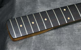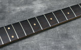 The body finish has some thumb wear just above the pickguard which has worn through the wood and a few scuffs and dings, mainly around the bottom edge. Otherwise the body finish is in very good condition. The finish on the back of the neck has light to medium wear. The headstock front is clean, the edges and back have a fair scuffs and patches of wear. The frets are in great shape having been dressed in our workshop. The tip of the pickguard by the lower horn is missing.