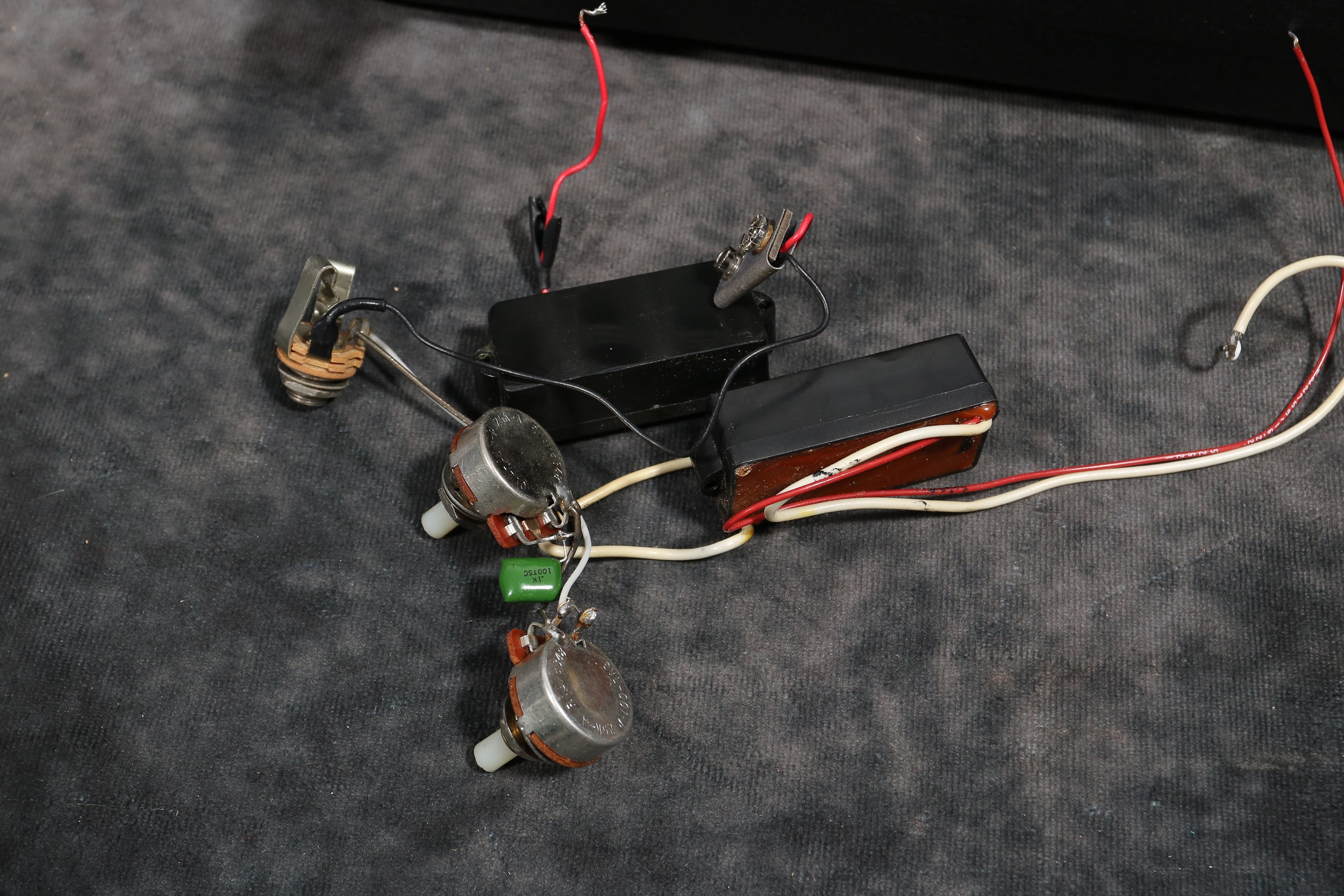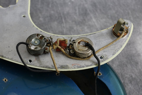 Body and neck/headstock refinish / new decal / refretted with a new bone nut / previously fitted with EMG pickups - as a result, a small section of the control cavity was enlarged to accommodate the battery / one half of the pickup was recently rewound by Lee Lavarack of Toltec pickups in Leeds / there's a crack in the guard running underneath the volume knob / the volume pot has been changed - the tone pot is original and dates to early '62.