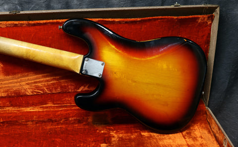 1962 Fender Precision Bass, tastefully refinished in early 2021 by Shane Haigh "The String Surgeon" in Wakefield. Body only refinish. The original Sunburst is still in the neck pocket, pickup cavity and control cavity. It needed a refinish because when it arrived it was poorly refinished and needed tidying up. It has a lovely unbroken tortoise-shell guard and a slab rosewood fingerboard. It's an amazing player with an incredible neck. When the bass came in it was missing the metal neck pickup cover so I have added a Fender reissue. The bridge cover appears to be original. The pickup was faulty so I have had it rewound by bare Knuckle. The case is original but is structurally on its last legs. It is only being held together by the interior The bass is otherwise original.