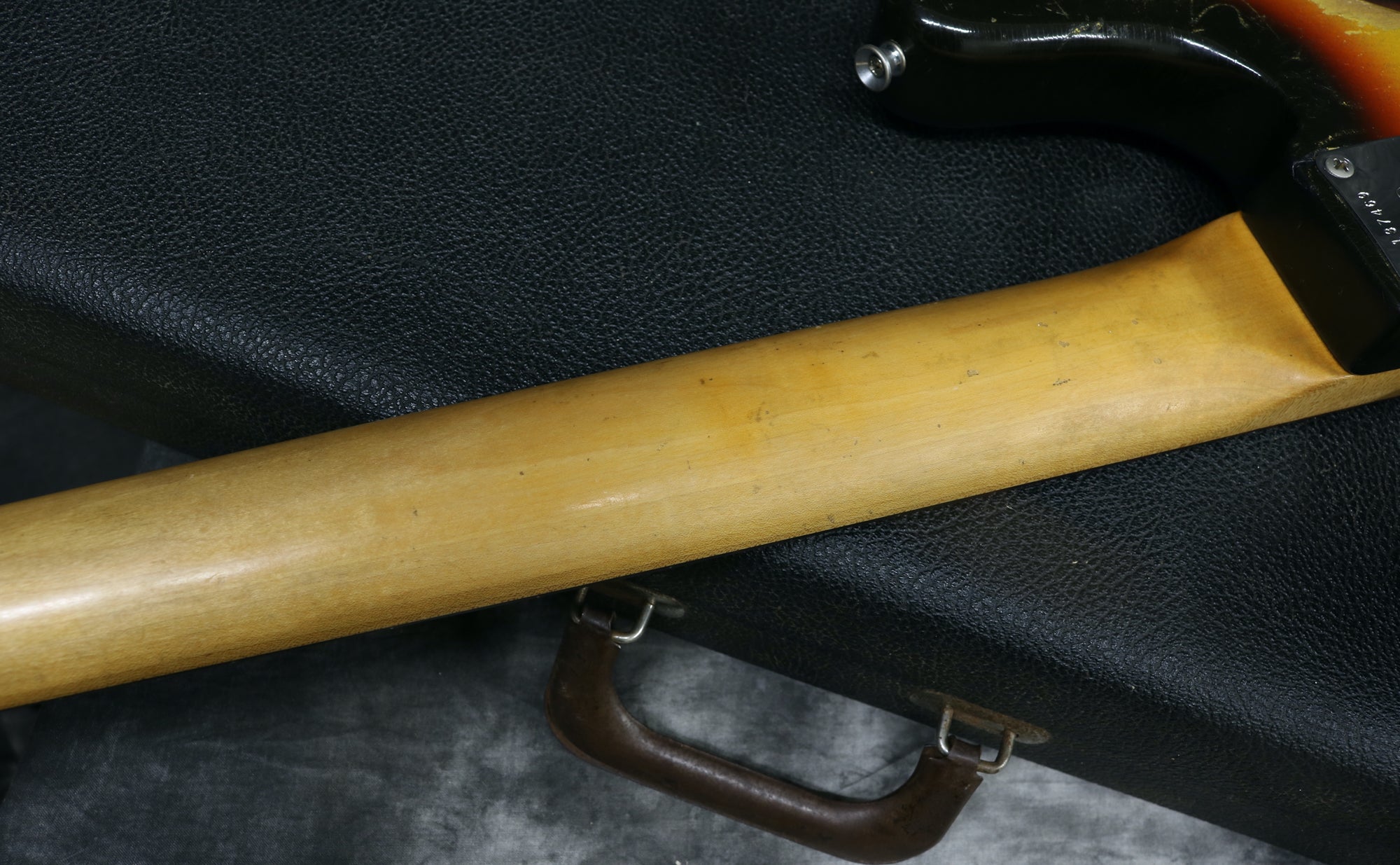The body finish has plenty of play wear and battle scars which are mainly around the edges of the body but also a few large scratches in the front and some buckle rash on the back. There is also some light lacquer checking but is remarkably clean for a bass of this age and the Sunburst is still vibrant. The finish on the back of the neck has light to medium wear but is overall very clean as is the headstock. Despite the obvious signs of play wear to the body, the frets show very little wear at all and the neck shows no signs of a re-fret. This bass came in with a very old set of flats on it which could well have been on there for a very long time.