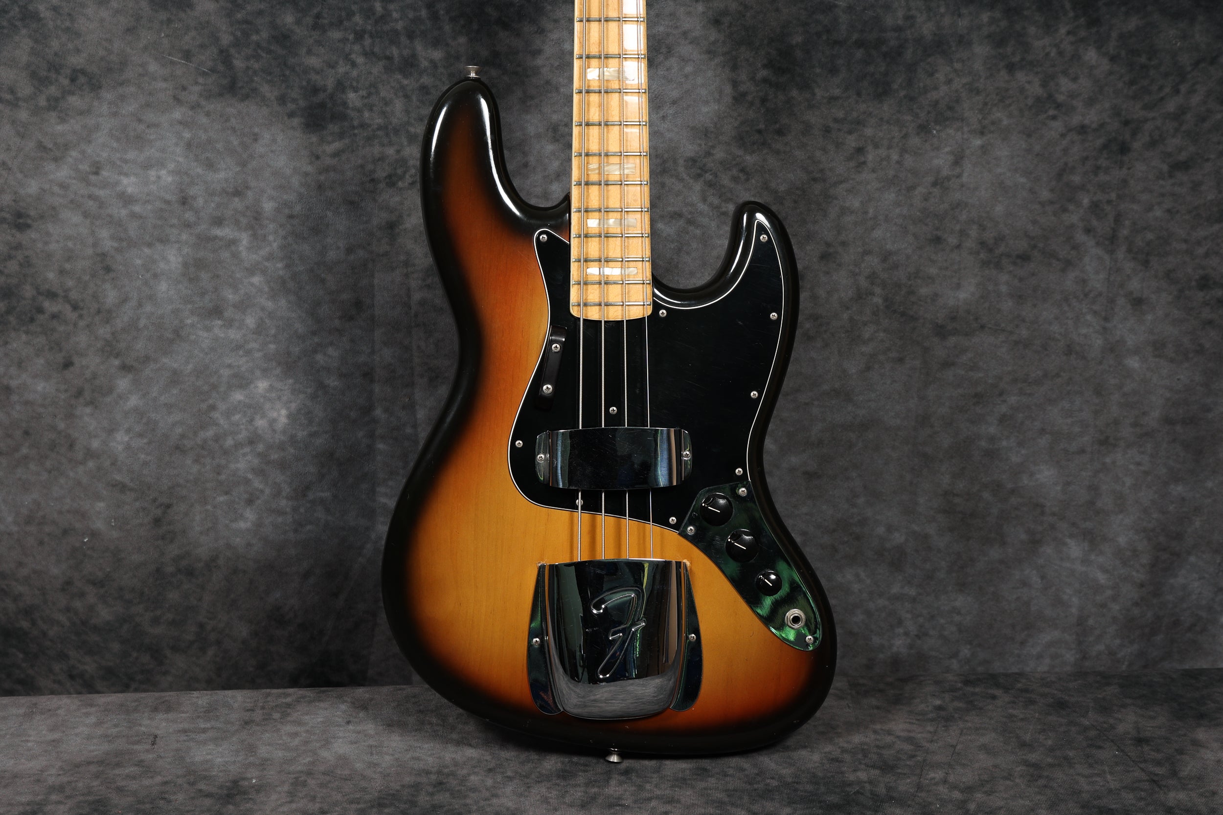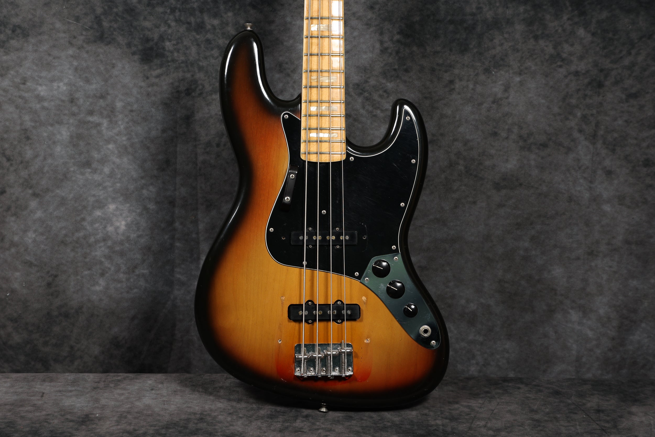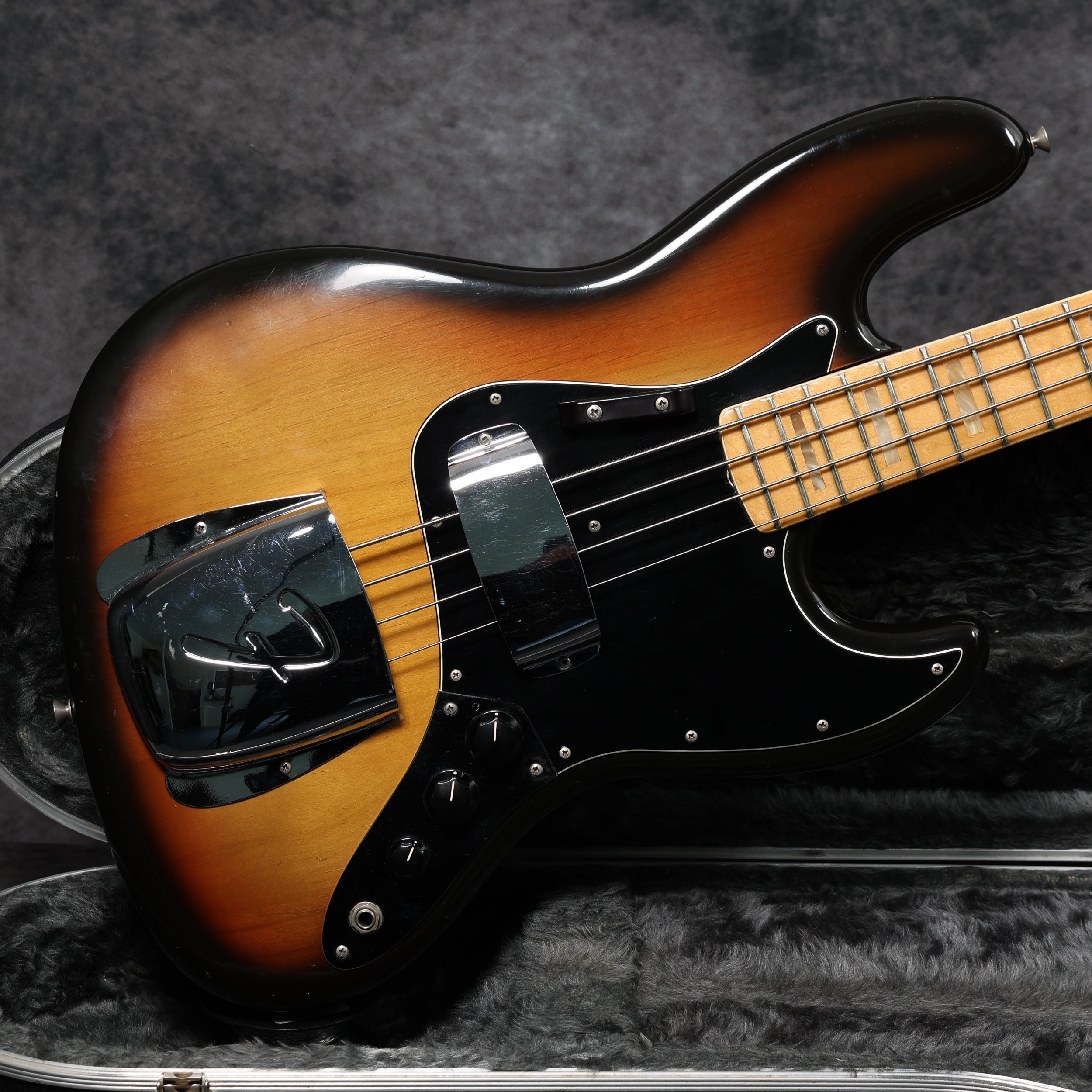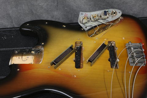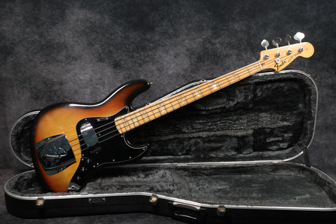 1974 Fender Jazz Bass with a Sunburst finish in very good condition. Maple neck and fingerboard, pearl block inlays and white binding. Aside from the case, it's all original and complete. Supplied in a Hiscox flight case.
