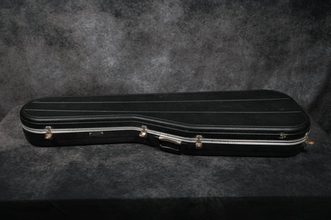The red in the sunburst has faded significantly on the front but remains vibrant on the back. There are a few small nicks, dings and scuffs, mainly around the edges of the body, but nothing major. The neck is clean, and the binding is all intact. The frets are clean and wear-free. The truss rod works as it should, and the neck is straight. The headstock has a few small scuffs along the top edge, but is mostly clean.