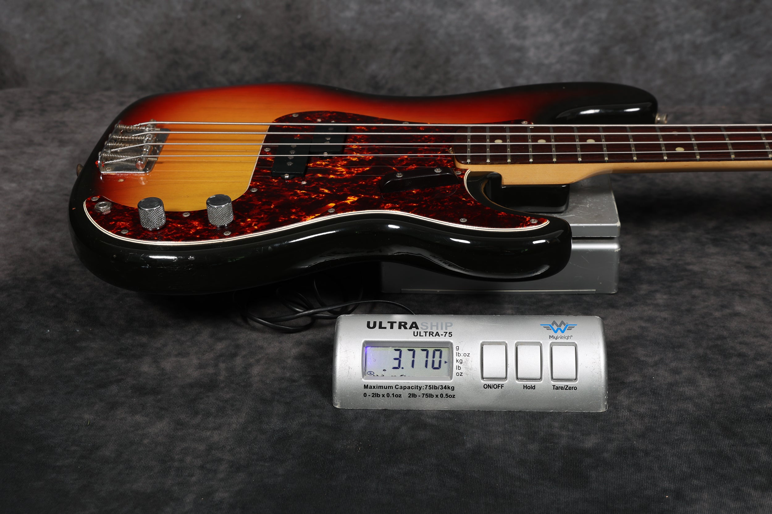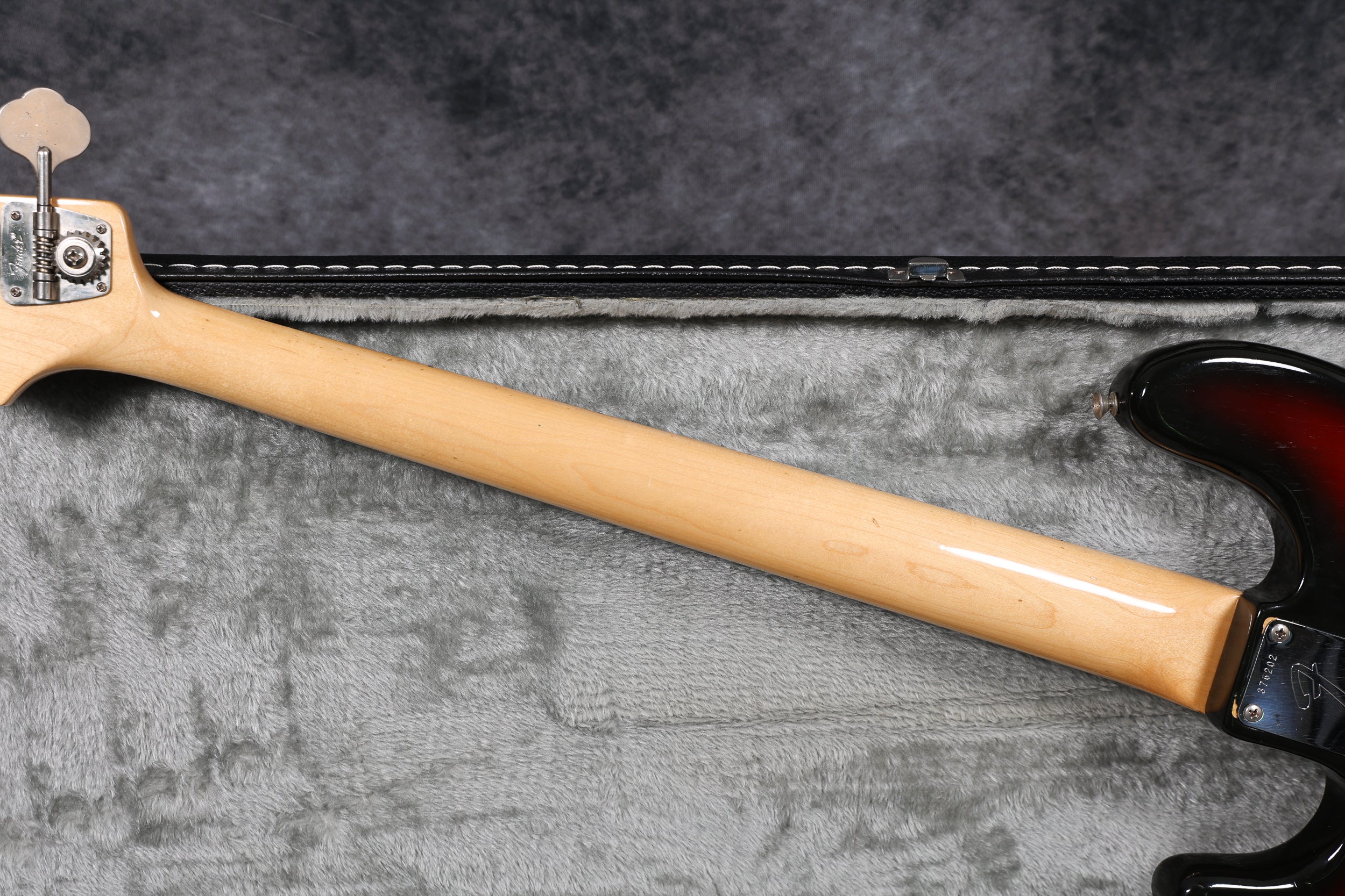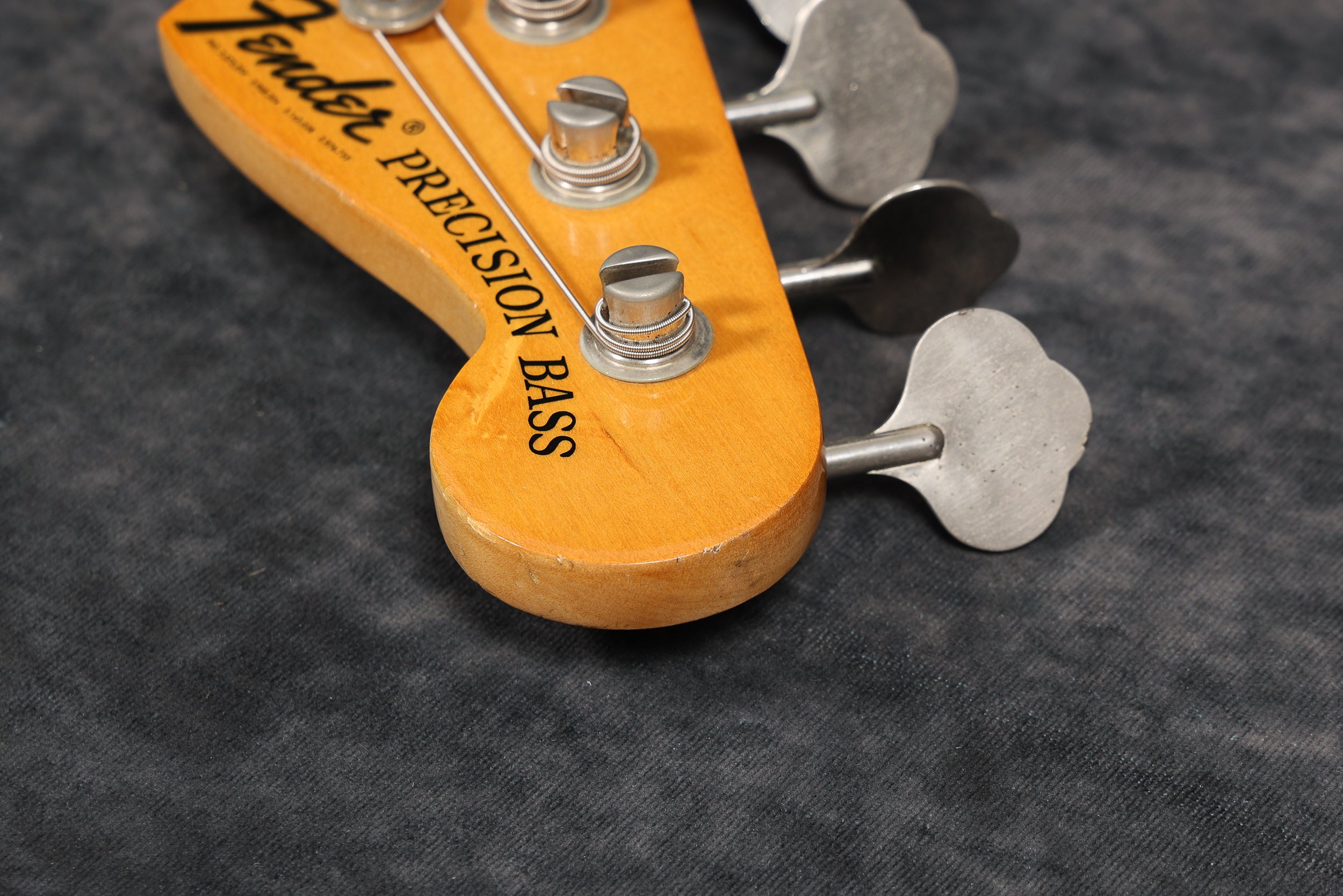 1972 Fender Precision Bass, with a Sunburst finish and tortoiseshell pickguard. Excellent + condition. It has a maple neck with a rosewood fingerboard. All stock and original except the solder on the volume pot and the case. It's nice and light, weighing 8 lbs 5 oz / 3.77 kg. The serial number of this bass indicates early 73, but all dated parts are from 1972.