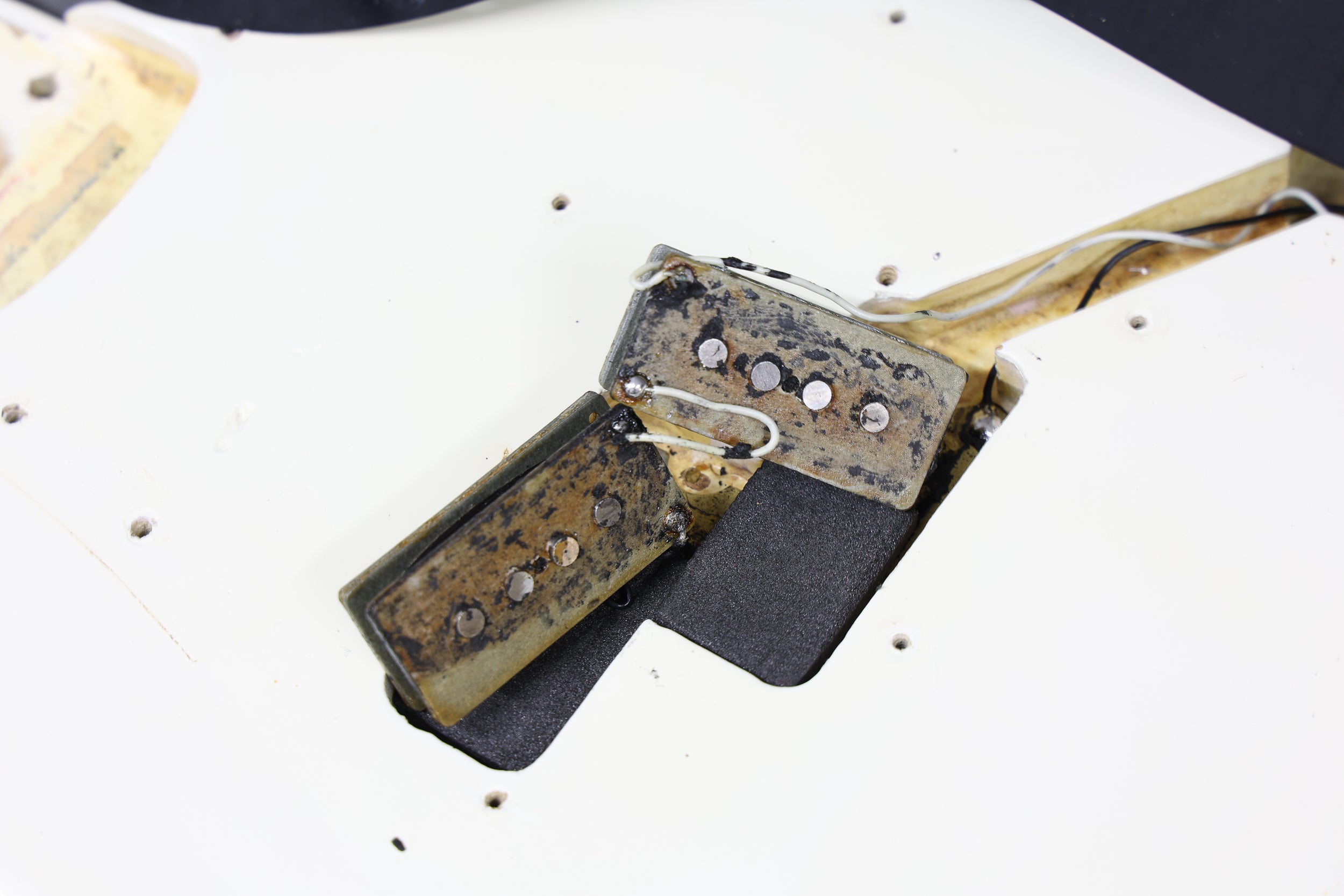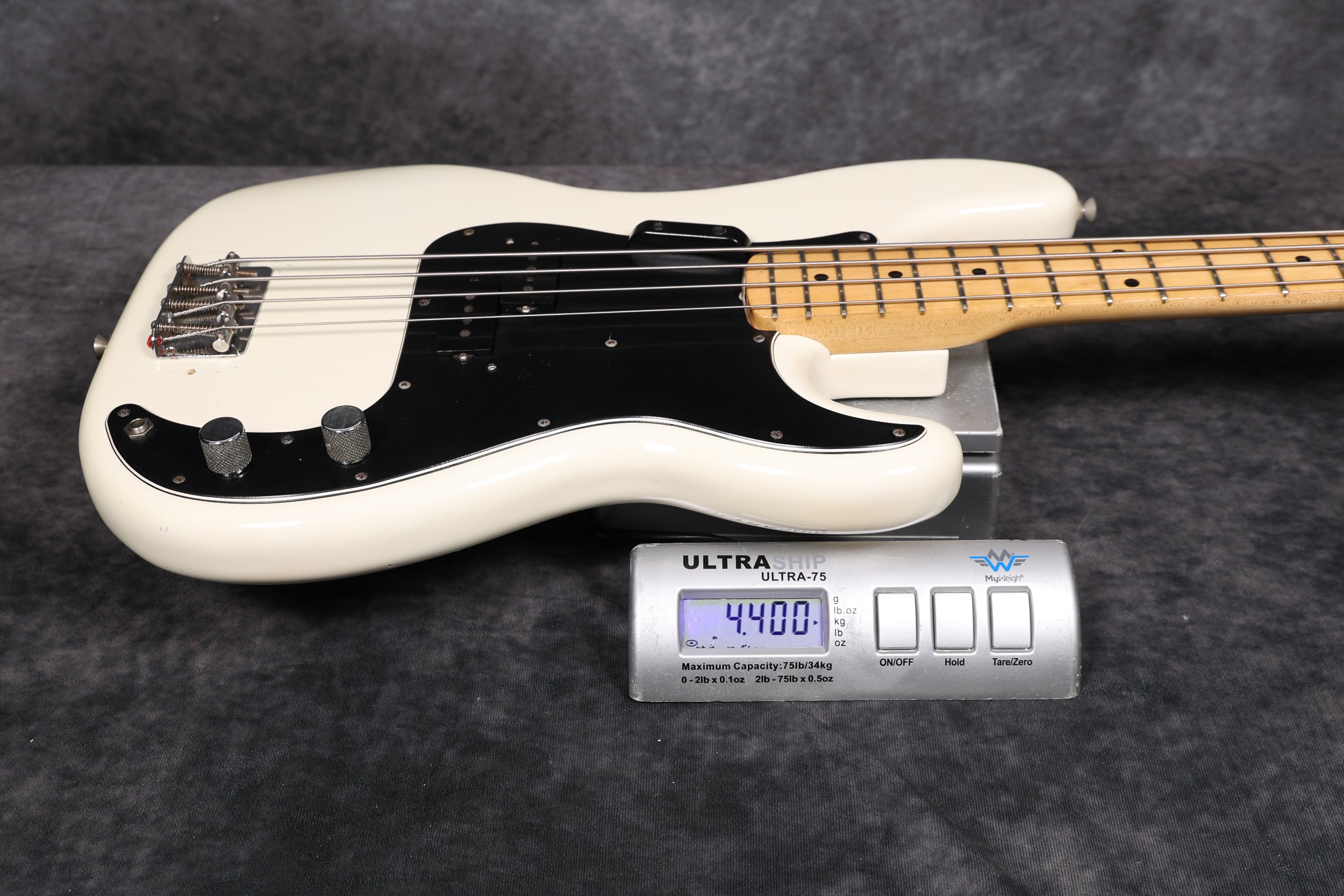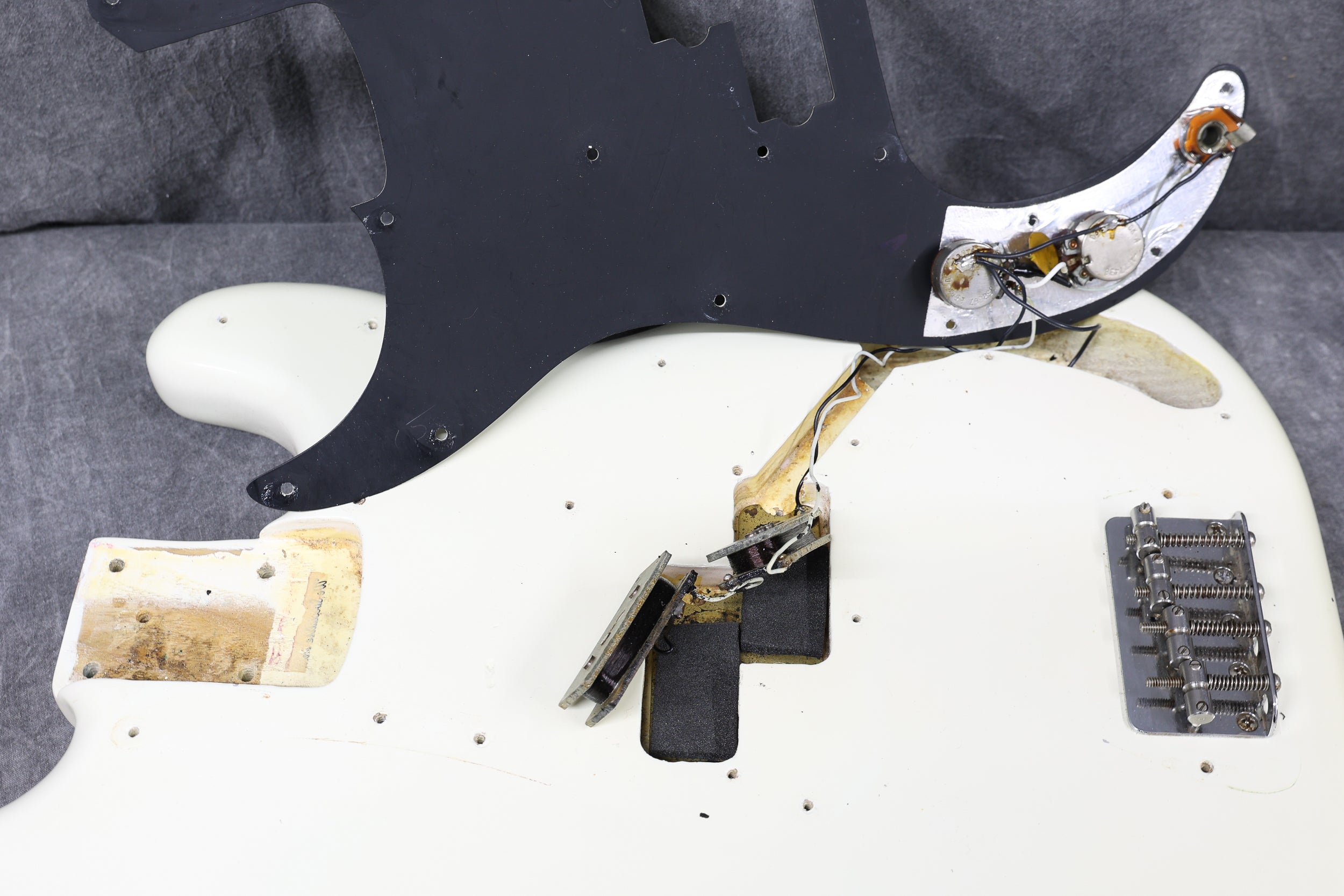 This bass has been fully set up in our workshop with a medium/low action and is strung with a fresh set of nickel Rotosound round-wound strings. Both pots date to 74. Only the tone pot has a visible week (38th). The volume pot week is covered in solder. Both pickups are date-stamped to 1974. Both have original winds with strong output. Serial number:549374, weight: 9lbs 11.5oz / 4.4 kg. Nut width:41.4 mm. Depth at 1st fret: 22.5 mm.