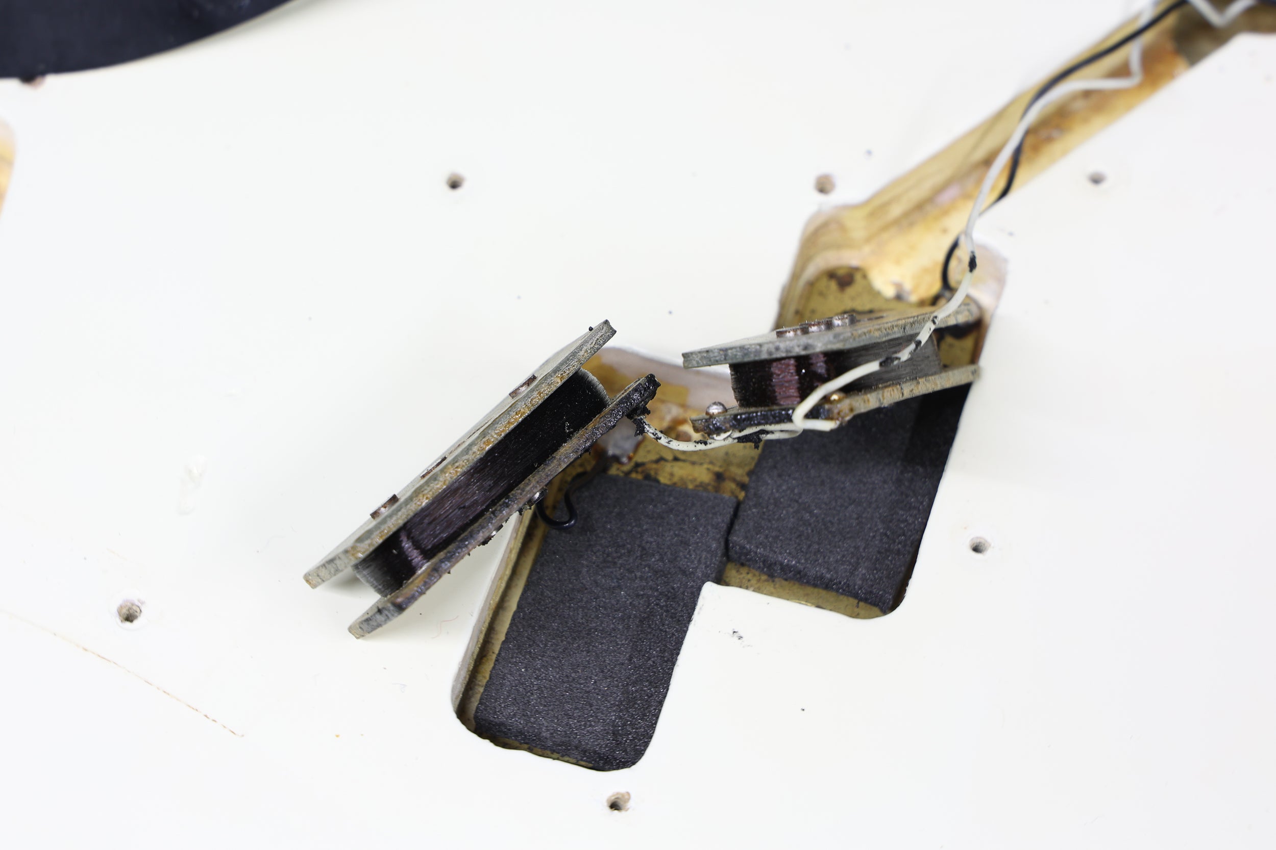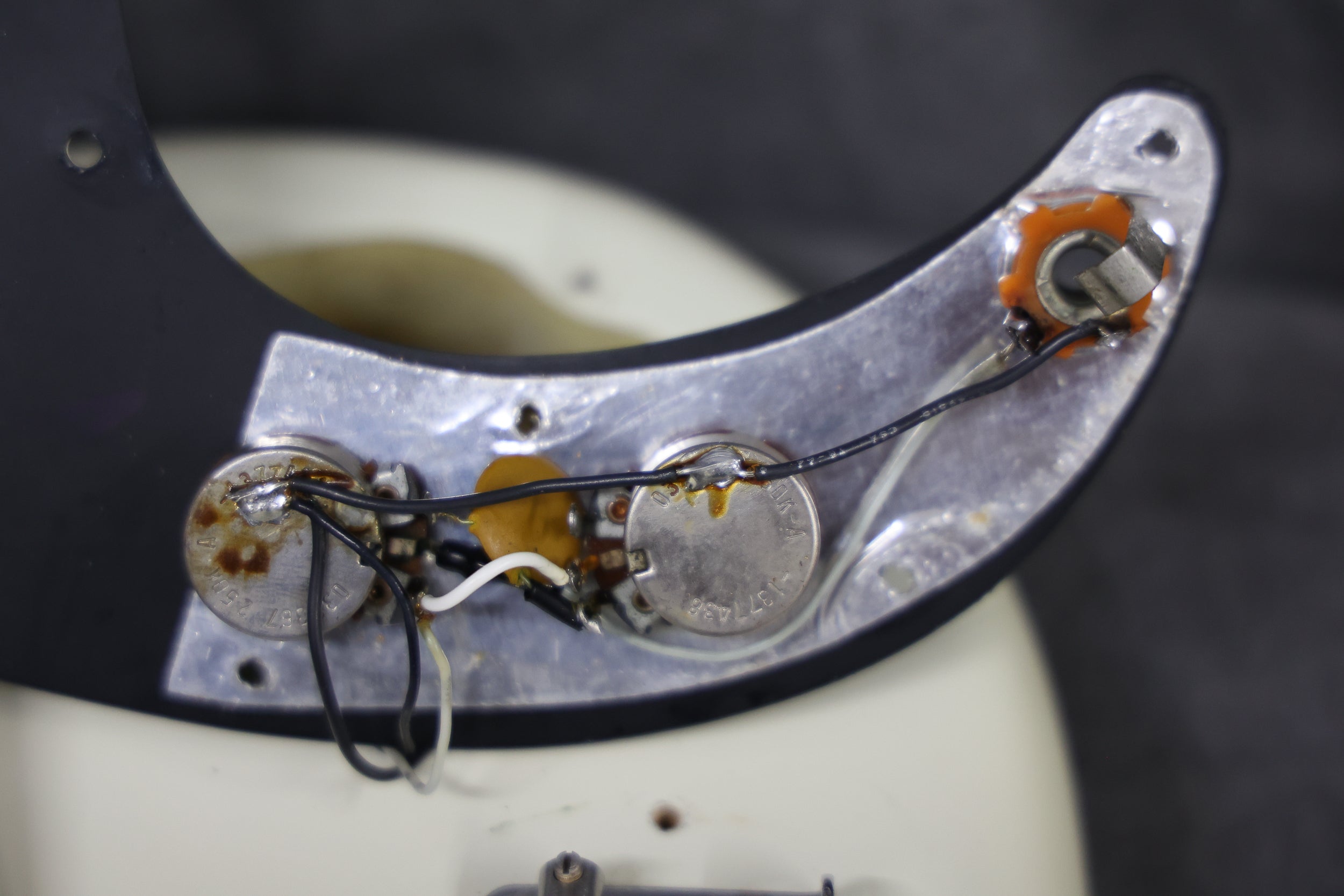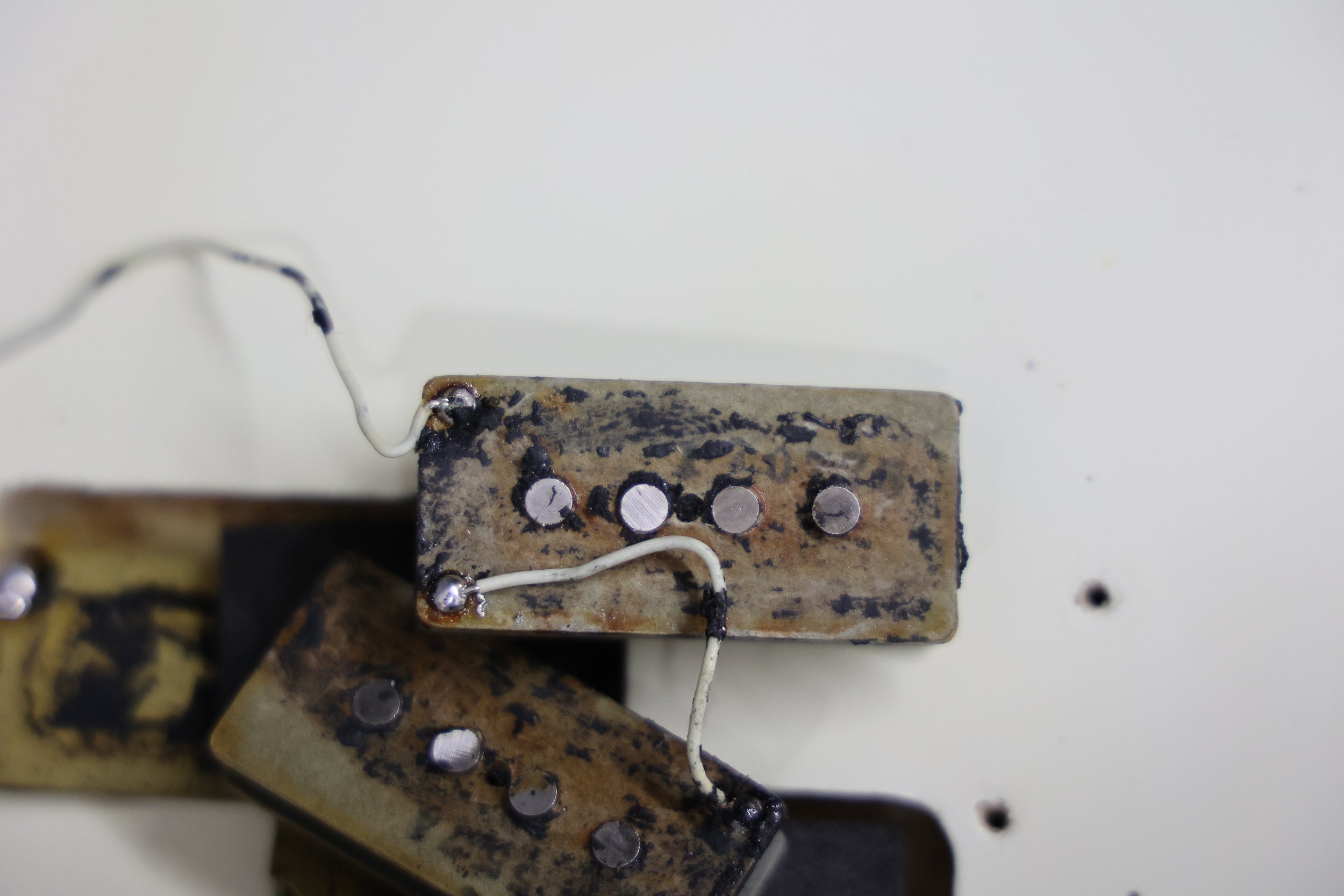 This bass has been fully set up in our workshop with a medium/low action and is strung with a fresh set of nickel Rotosound round-wound strings. Both pots date to 74. Only the tone pot has a visible week (38th). The volume pot week is covered in solder. Both pickups are date-stamped to 1974. Both have original winds with strong output. Serial number:549374, weight: 9lbs 11.5oz / 4.4 kg. Nut width:41.4 mm. Depth at 1st fret: 22.5 mm.