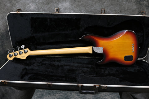 2002 Fender American Deluxe Precision Bass, Sunburst finish in excellent + condition. USA made. Other than the case and strap buttons this bass is all original. (Supplied in an '80s Fender case) It has a straight neck and original frets which are in great shape with minimal wear. As you can see this bass is extremely clean with only a few tiny scuffs and dings to the finish.