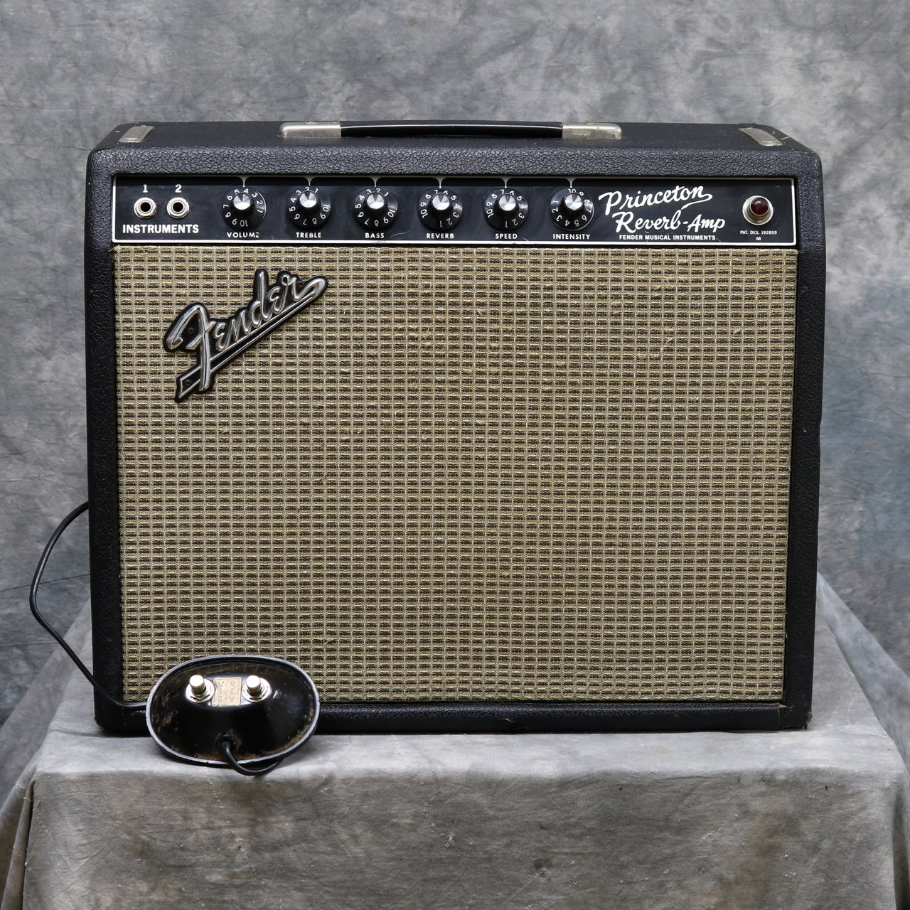 1967 Fender Princeton Reverb amplifier in excellent + condition. Original footswitch and re-coned Jensen 10" speaker driving 12-15 watts. The amp is 110V / new step down transformer included. It's recently been serviced with some new caps and had a 3 pin power cord fitted. In addition, it's had had a new Mercury magnets power transformer fitted as well as a CE Manufacturing USA Made Multi-Section Can Capacitor. It has a new JJ 5AR4 /GZ34 rectifier tube, 2 x Sylvania 6V6, 1 x Tung Sol 12AX7 (the other 12AX7 has no markings) ECC83, 1 x Mullard 12AT7. The 7025 is USA made but probably not original to the amp.