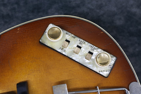 The 63-RLC is inspired by the bass we made in 1963 for Paul McCartney and features an unbound 2 piece neck and 2 on a strip tuners.