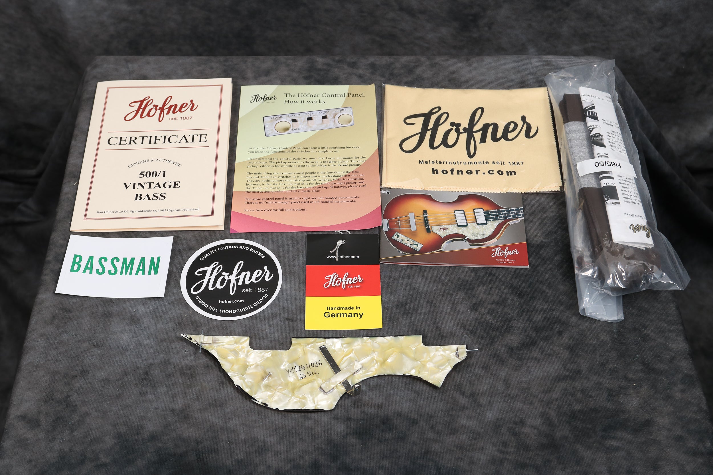 All models are supplied with a pearloid pickguard (not mounted) and include a Höfner Vintage strap and case.