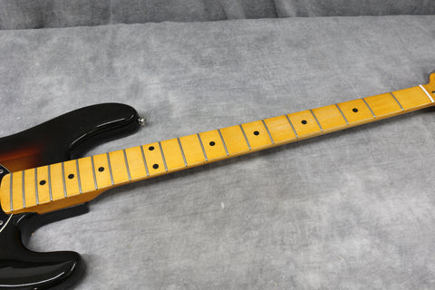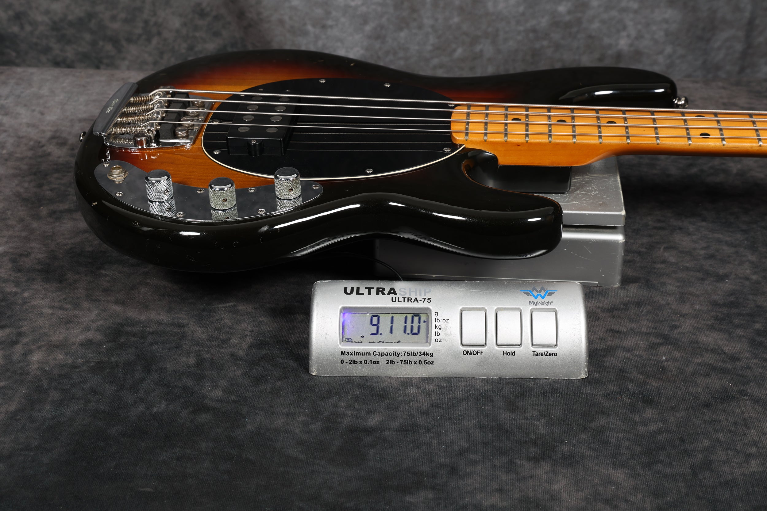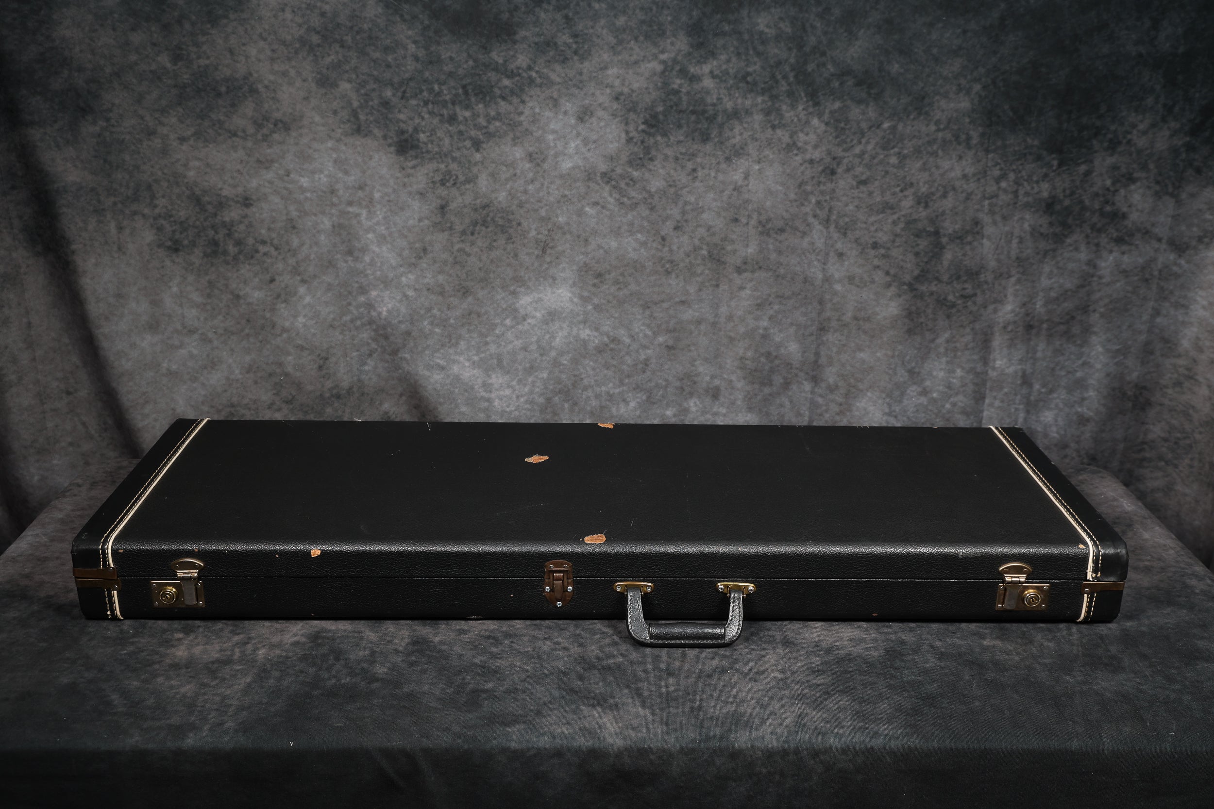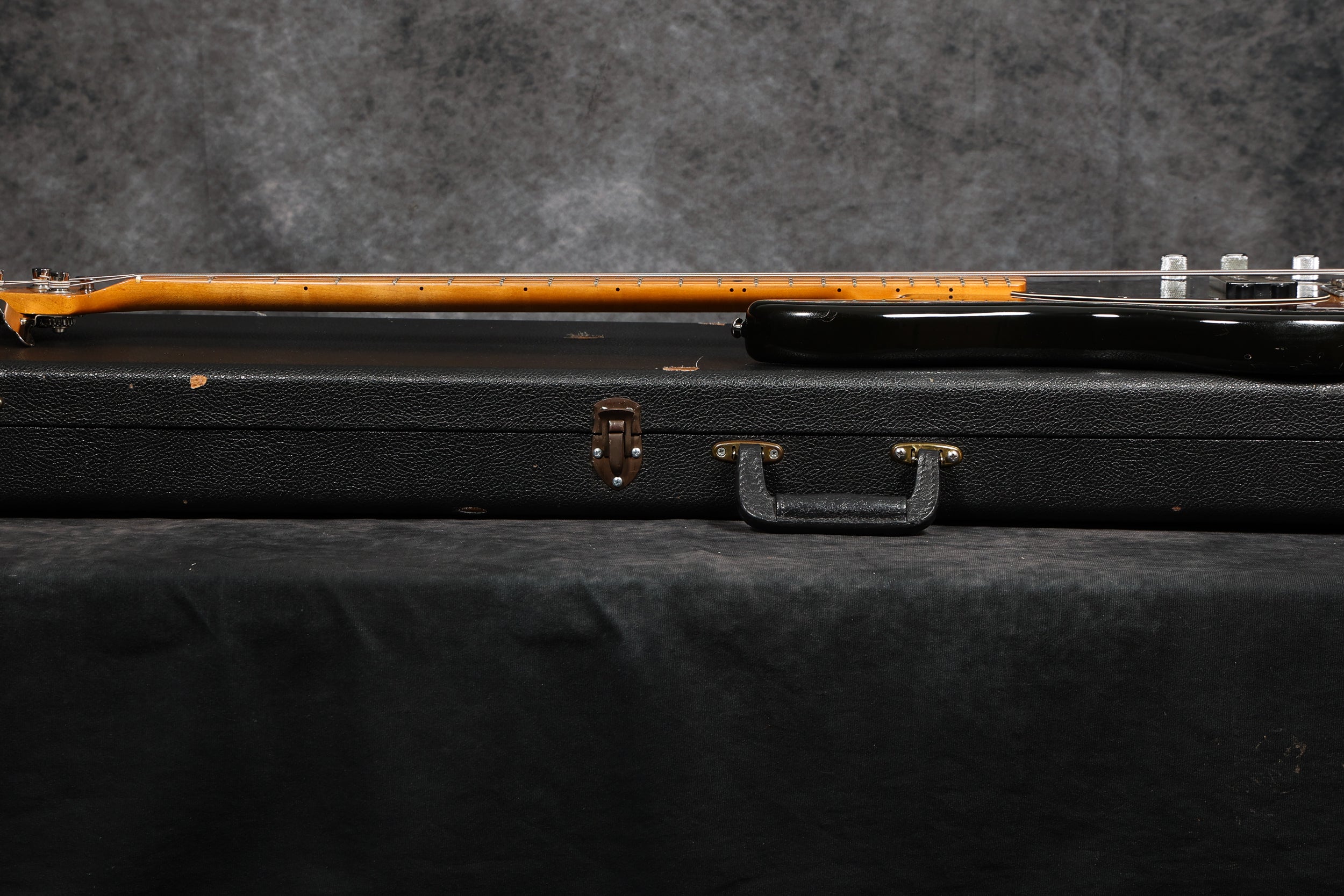 1978 Music Man Stingray with a rare slim 38 mm nut width. Sunburst finish in very good condition, black pickguard, maple neck & fretboard. Equipped with a 2-band EQ, epoxy-coated preamp, and through-body stringing. Aside from a refret and new mute sponge, it's all original, including the hard case.