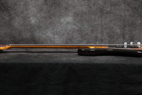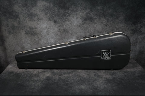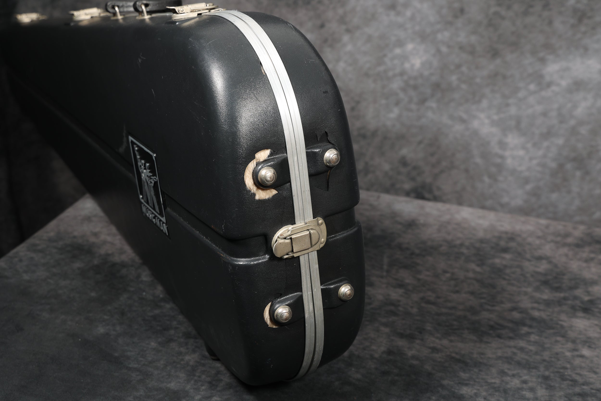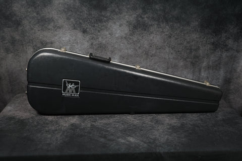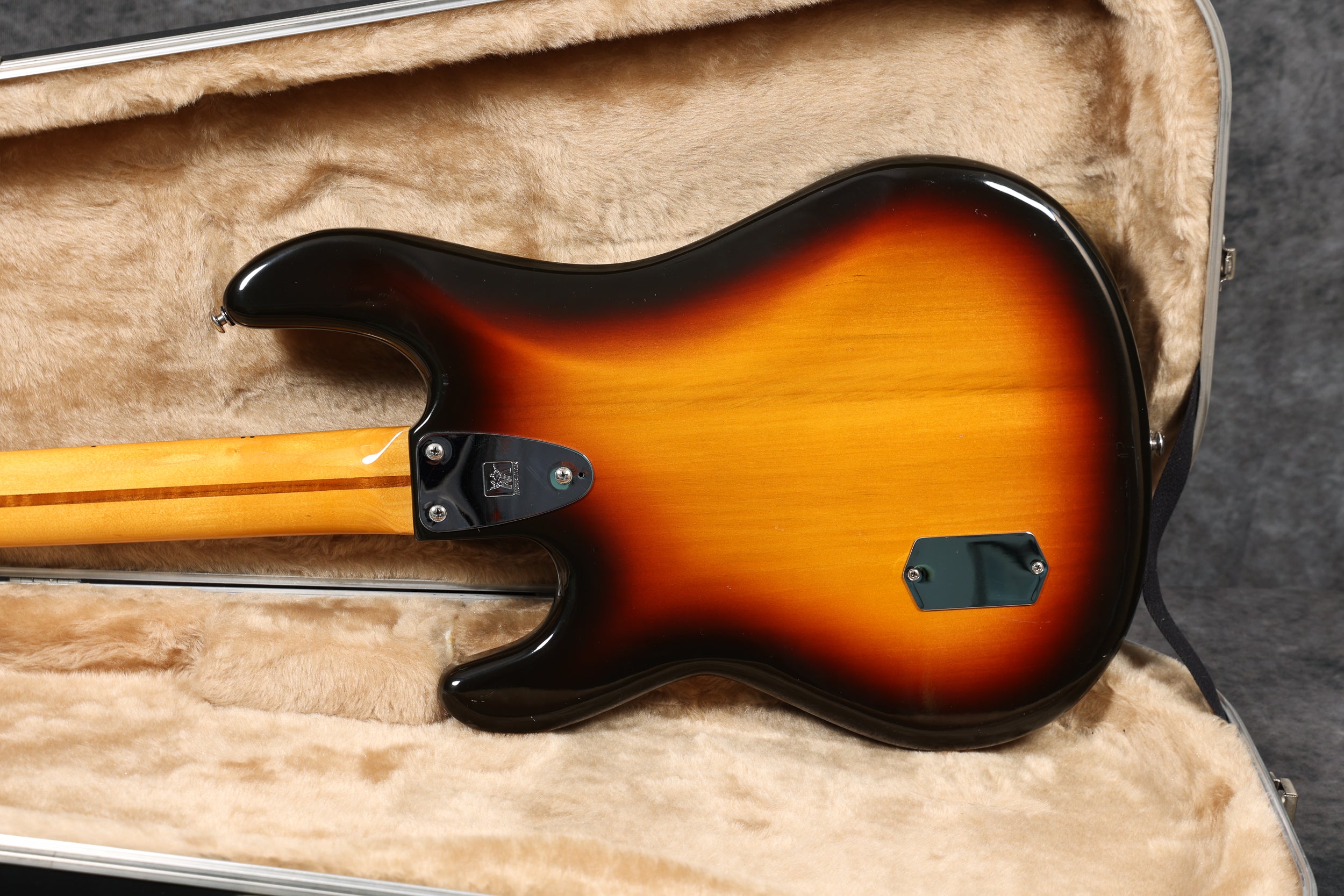 The body finish is extremely clean with only light scuffs around the edges. The headstock is also very clean except for 2 very small patches of wear where the neck meets the headstock (probably from a stand or wall hanger) and some light scuffing on the top edge. The back of the neck is immaculate. The board is extremely clean with little sign of wear. The truss rod is fully operational with plenty of room to move. The neck is straight and plays smoothly. The electronics work perfectly, and all hardware is in excellent condition. The case has some damage at the bottom end and along the hinged side - see pics. This is an all-around excellent bass.