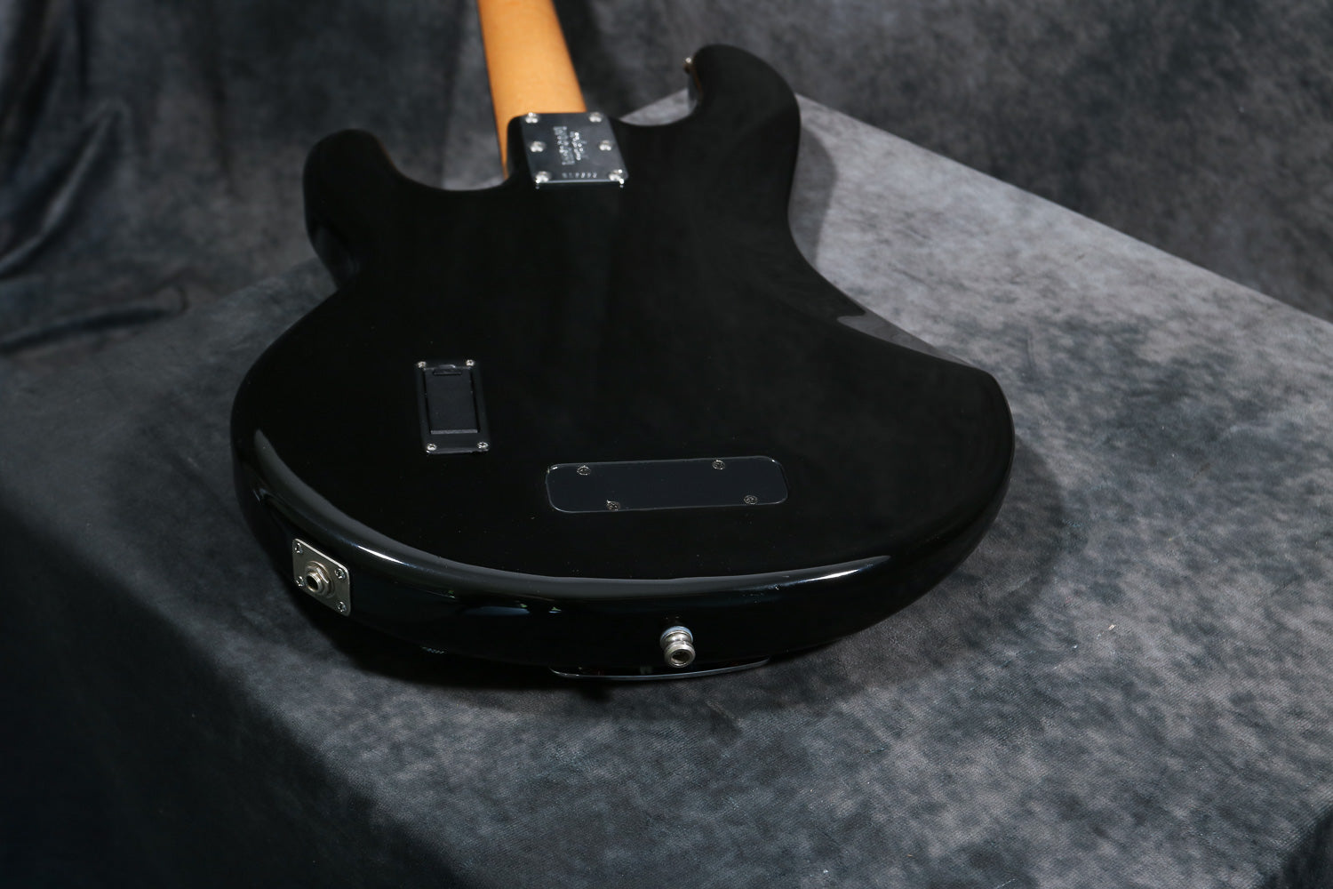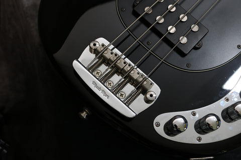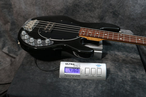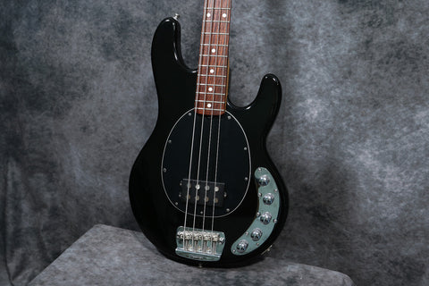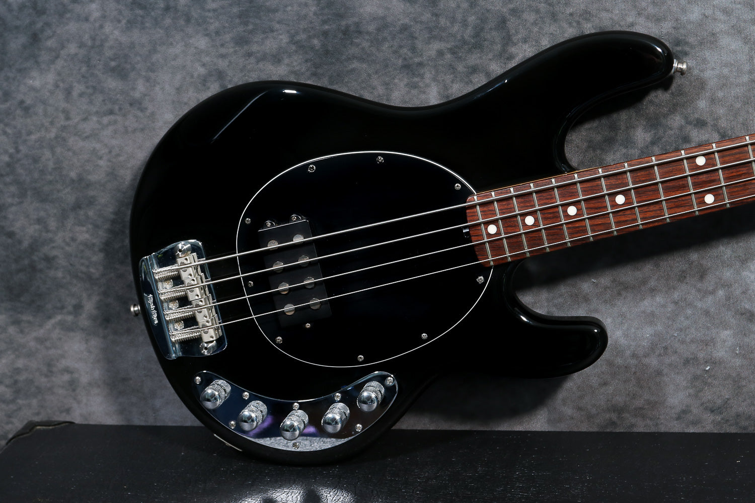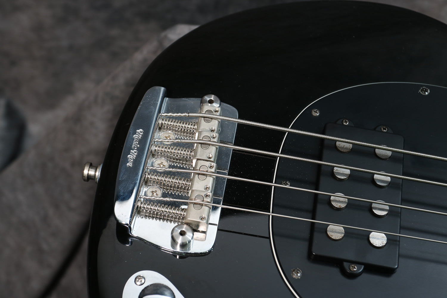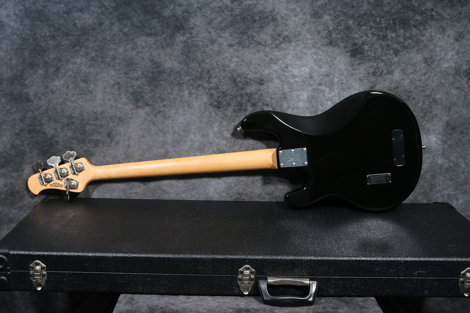 2000 Music Man Stingray 4, 3EQ H with piezo. It has a black finish a black pickguard and a rosewood fretboard. It's in exceptionally good condition. Supplied in a non-original case.