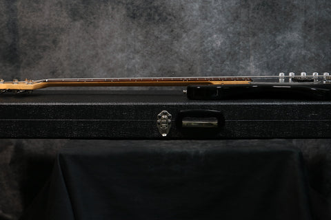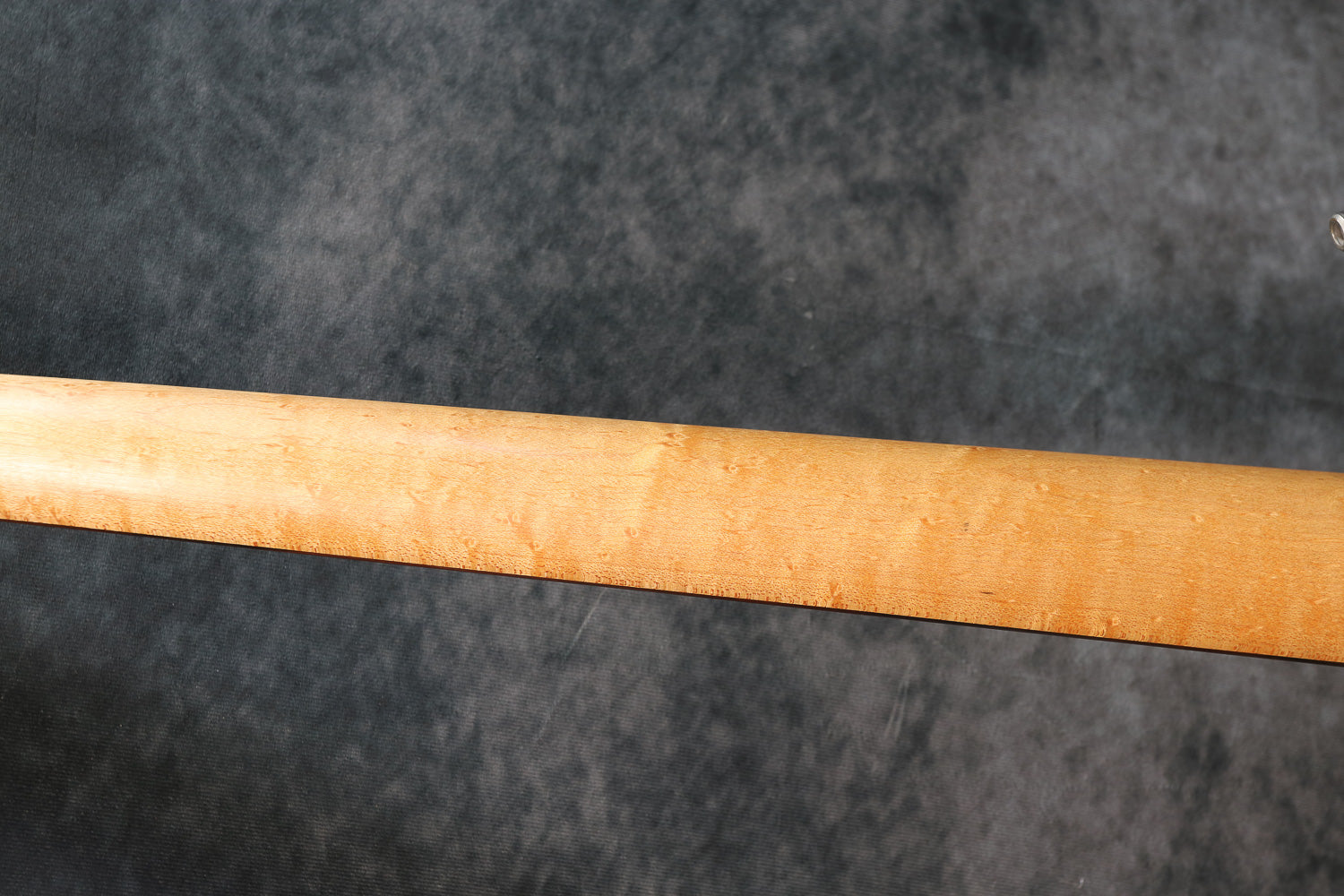 Weight 9lbs 10oz / 4.36 kg. Nut width: 42.5 mm. Depth at 1st fret: 21.1 mm. It's been set up in our workshop with a set of round-wound strings and comes with a 3-month warranty and a 14-day returns policy.