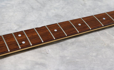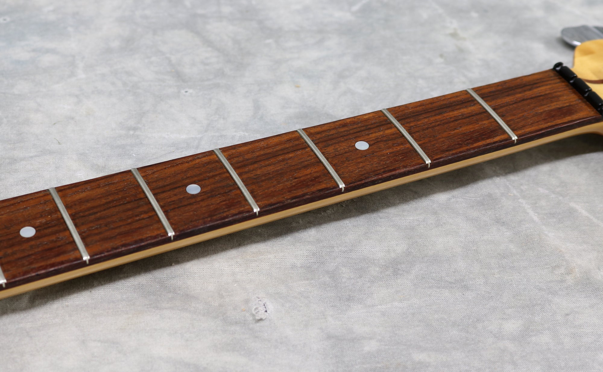The body is in very good shape, with only minor buckle rash, the neck is in excellent condition, the headstock has a few very small dings along the top edge. The neck is straight and in very good condition and the truss rod works as it should. There's one small ding in the edge of the fretboard around the 10th fret on the E string side.