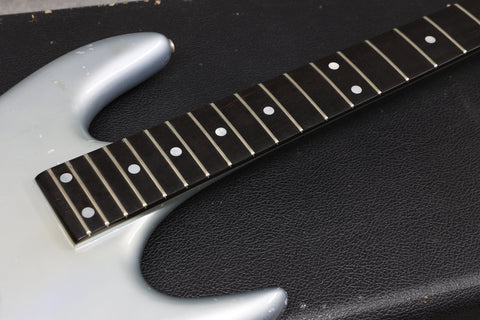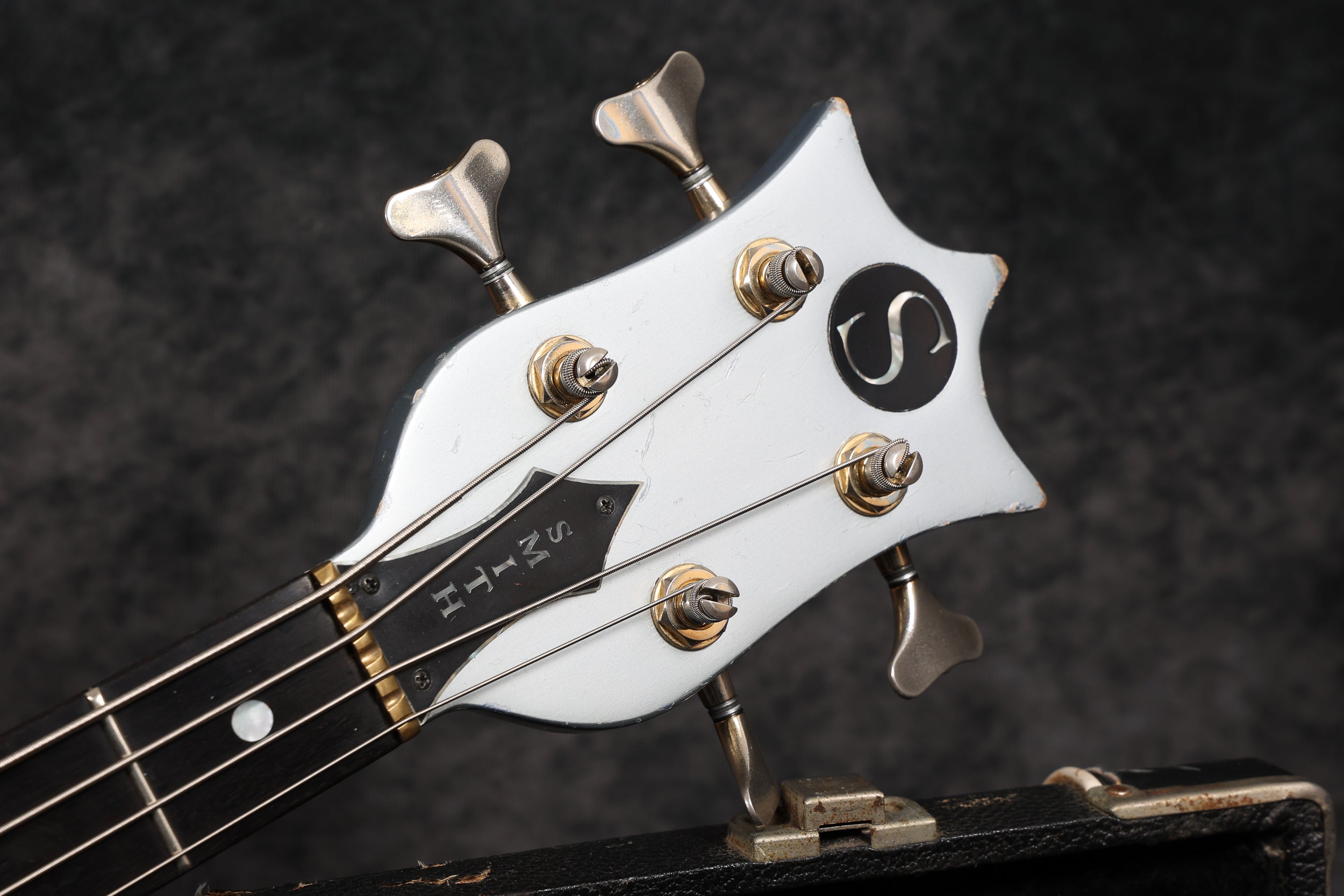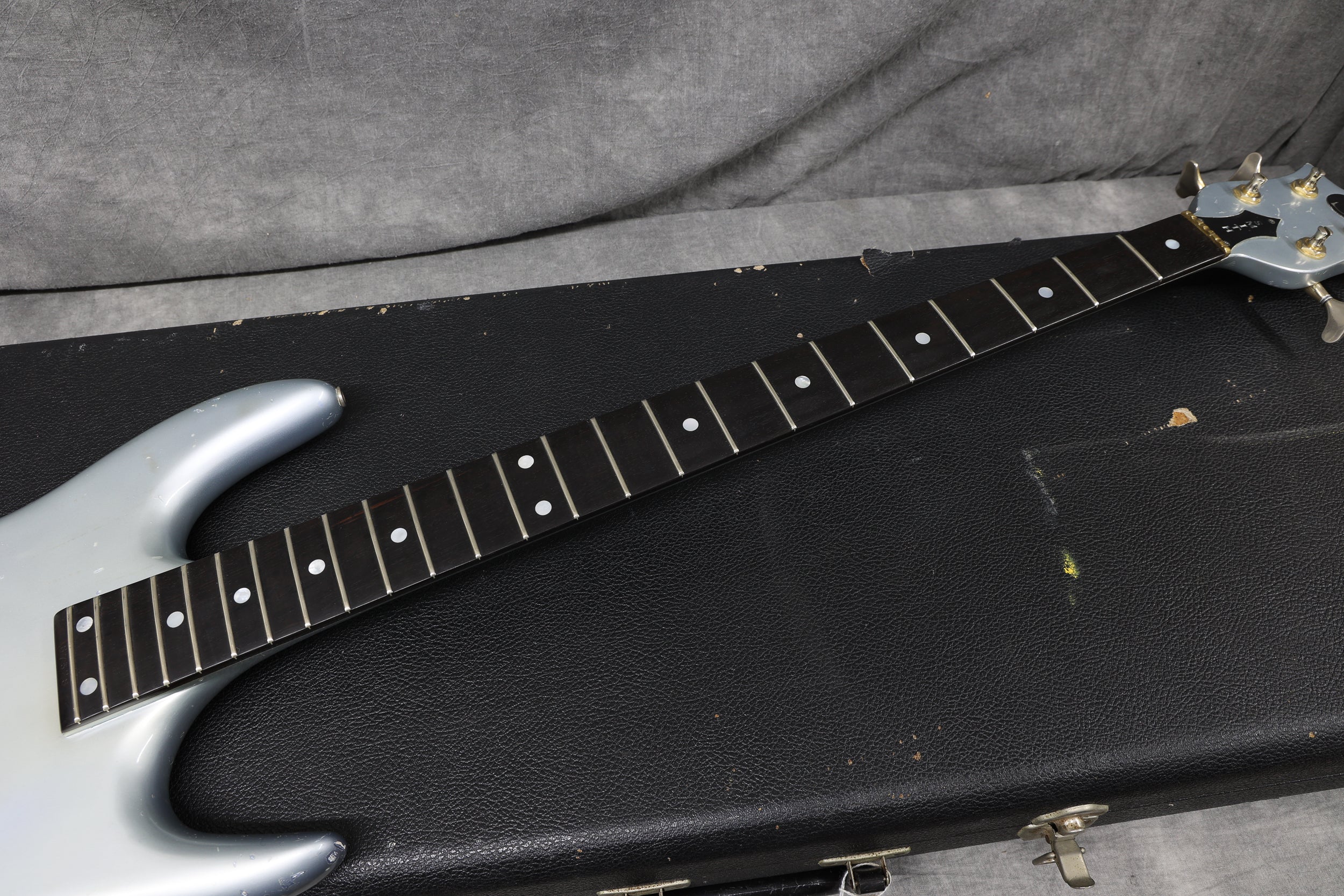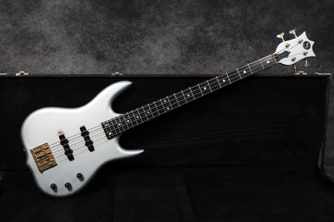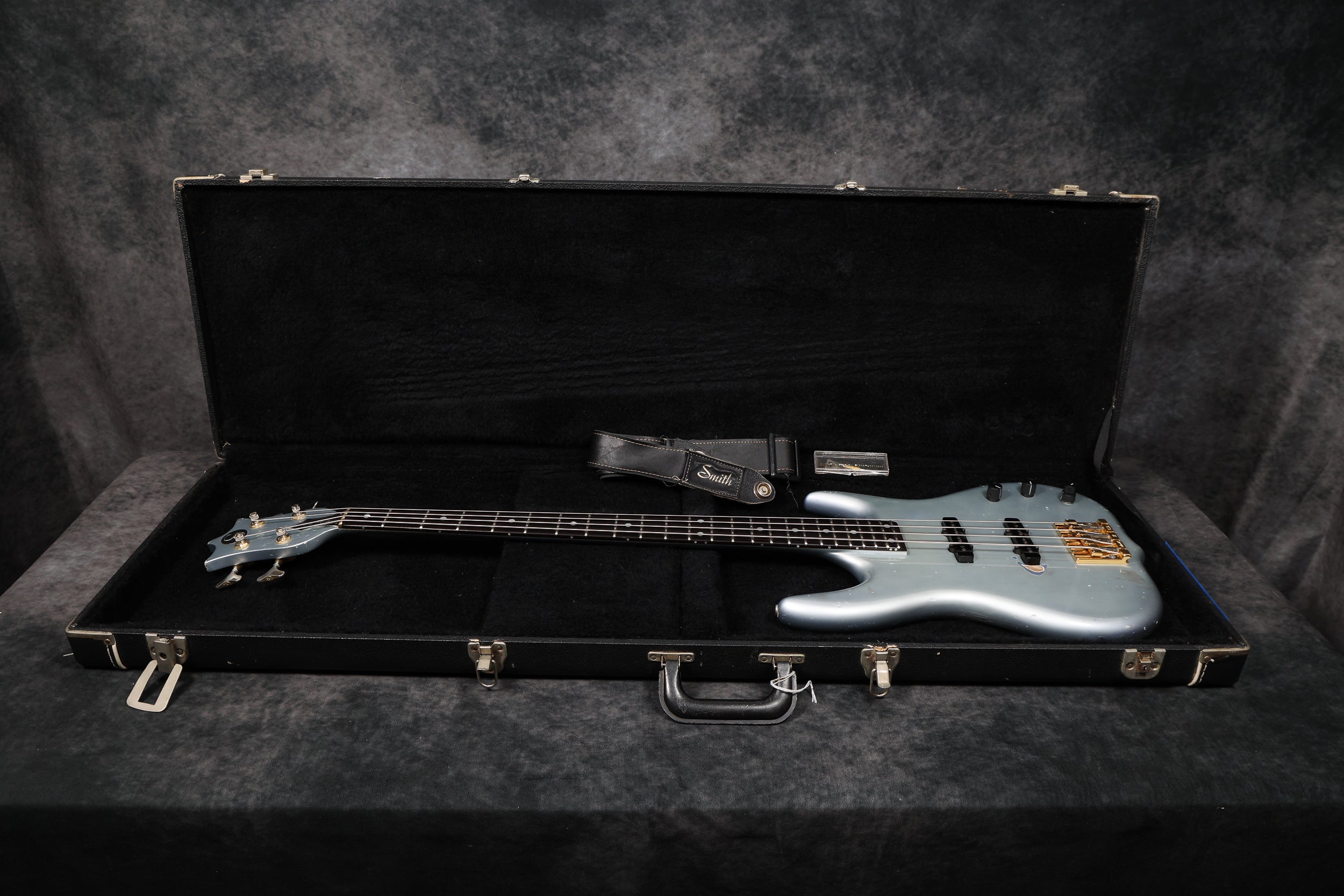 1987 Ken Smith BT4 in a very rare silver finish. The bass is all original. It's supplied with a hard case. It's in good condition but does show numerous signs of cosmetic wear. The frets are in great condition, having been dressed in our workshop and have plenty of life left in them.
