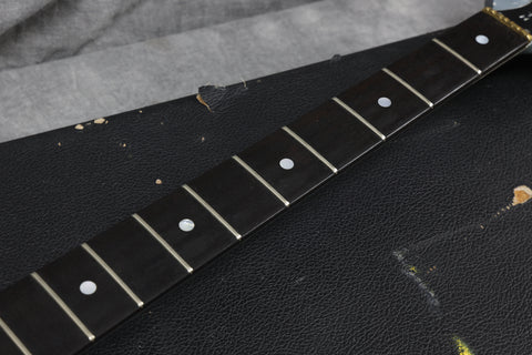 It's been set up in our workshop with a set of Ernie Ball strings. It has a low action and plays beautifully. Serial: 87328. Nut Width: 39 mm. Depth at 1st fret: 20.5 mm.