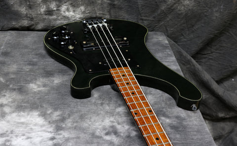 The 4003 Shadow bass was a limited series bass, reportedly ordered by Guitar Centre in the USA and only 50 were made/ some say more. So this bass is rare to find! The shadow bass is a 4003 model but differs in terms of its all-black hardware padouk fingerboard with black dot inlays, black neck binding and checkered inner body binding.