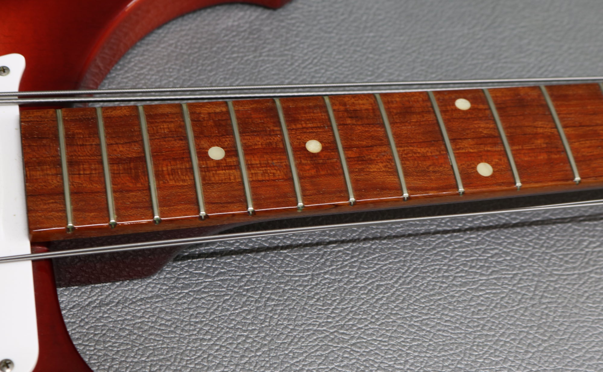 This Bass, as already mentioned, is in excellent condition with only a few small dings/scuffs to the finish. One or two around the lower edge of the body near the jack socket and one or two on the end of the headstock. I have documented these in the detailed pictures. The frets are in great shape with very little play wear. All hardware and electronics are in fine working order. The truss rods are fully functioning and the neck is straight with fantastic action having been set up in our workshop. It is strung with a set of Rotosound round-wound strings. Serial 99 09064. Weight 9lbs 7oz. Nut width 43.9mm. Depth at 1st fret 23.45.
