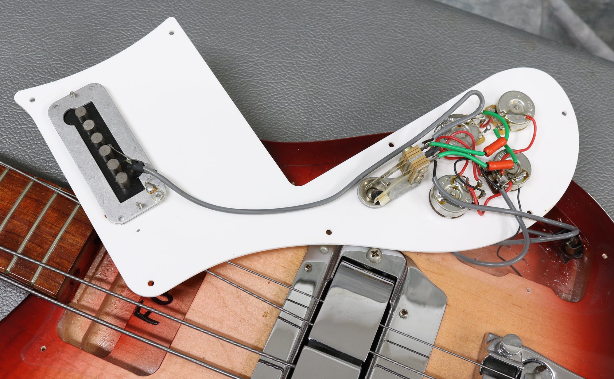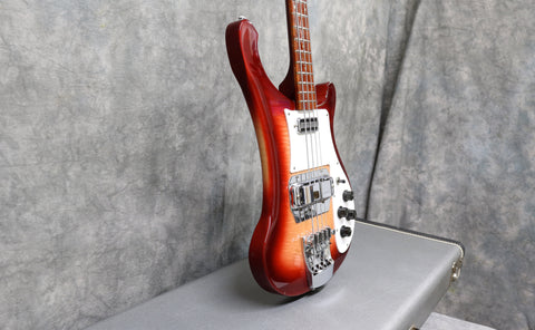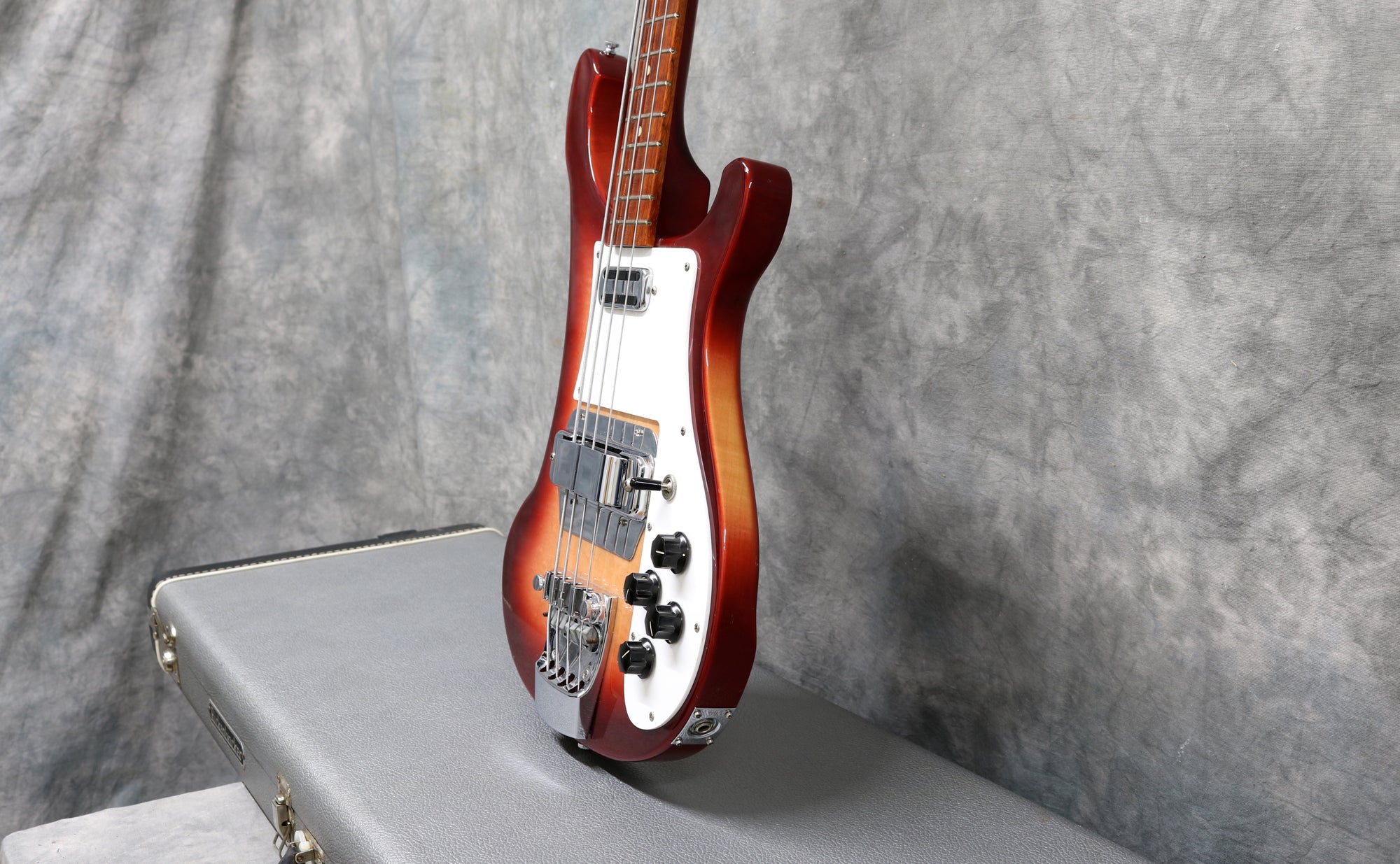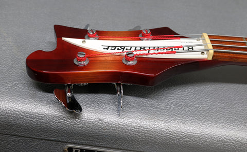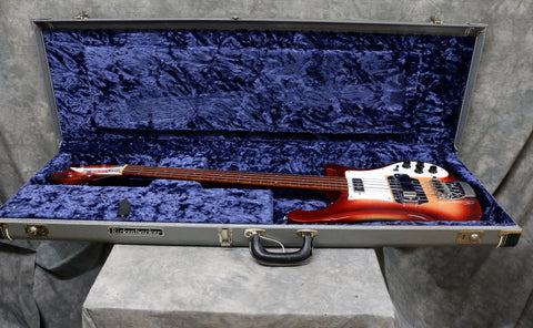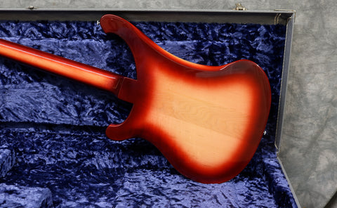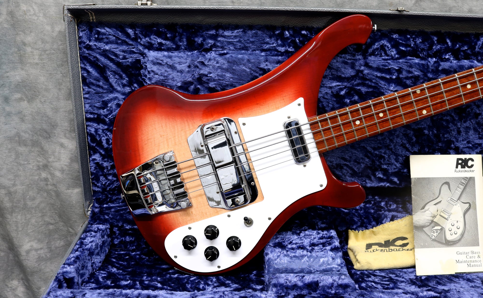 1999 Rickenbacker 4001 V63 with a Fireglo finish in excellent condition. Original Silver case, polish cloth and manual included. Rickenbacker excelled with their vintage reissue series. These 4001 V63 Basses are some of the best they ever made. The production of these basses began in the '80s and the V63 is the forerunner to the C64. It was based on the 4001S basses used by McCartney and Chris Squire etc and feature no binding, dot inlays, a toaster pickup at the neck and a horseshoe at the bridge. They are excellent, well-made instruments at a fraction of the cost of the vintage originals.