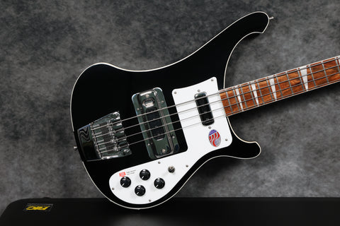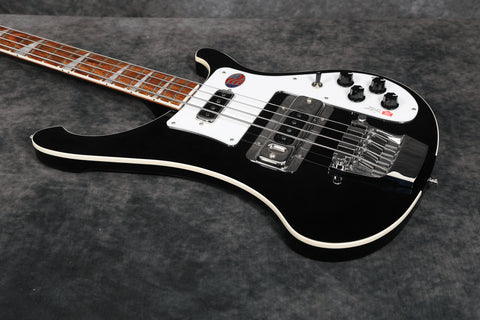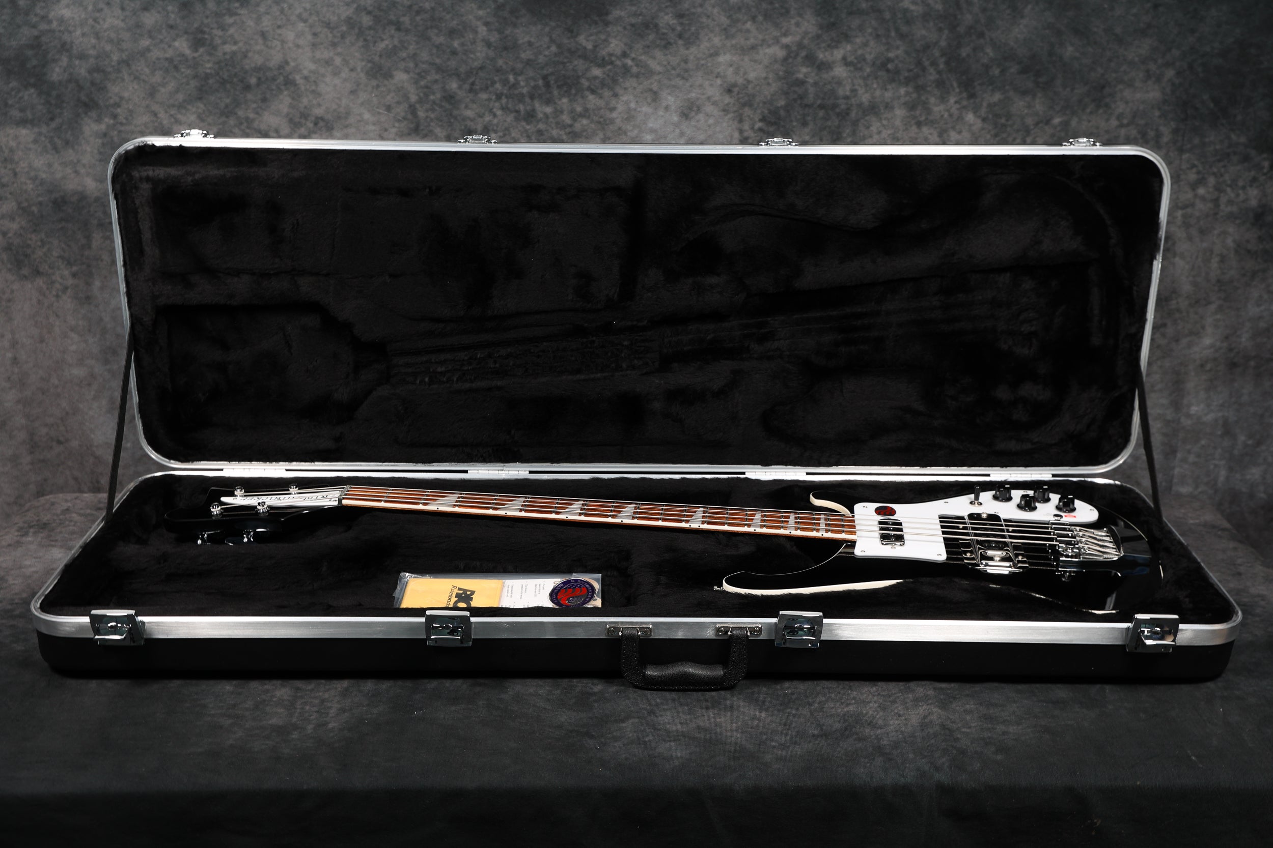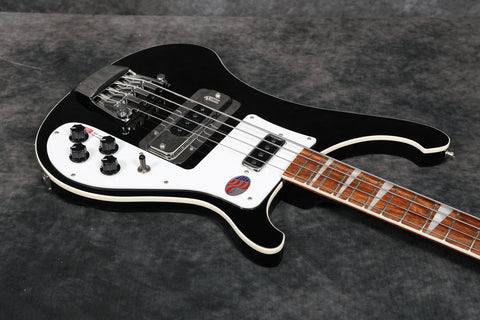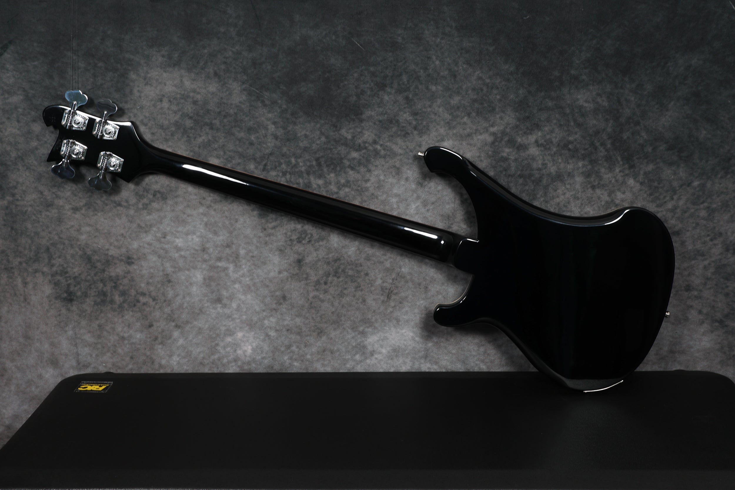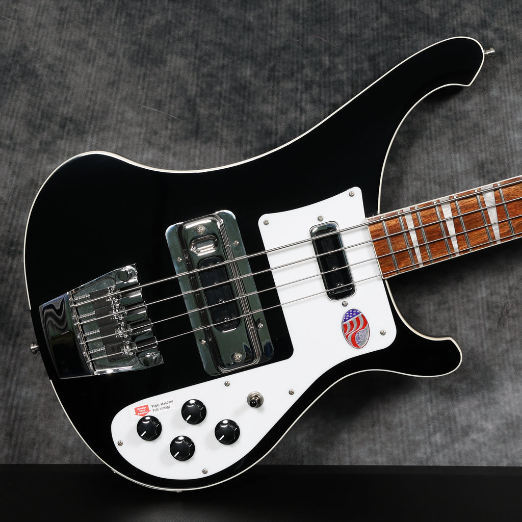 2025 Rickenbacker 4003, Jetglo finish, lacquered fingerboard. Mint/unplayed condition - you will be the first owner to play this bass. The bass pictured is in stock. This is the latest version with no pickup cover as standard. It also has the new version 2 tailpiece and bridge, and a slim-profile neck with a double-action single truss rod. Weight 9 lbs 8 oz / 4.31 kg.