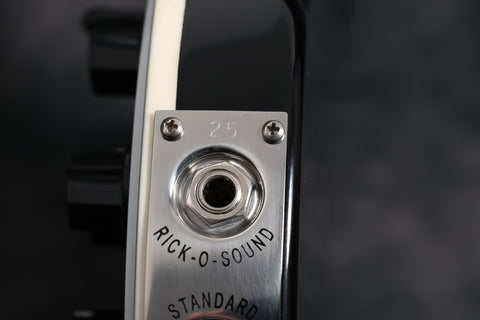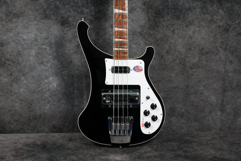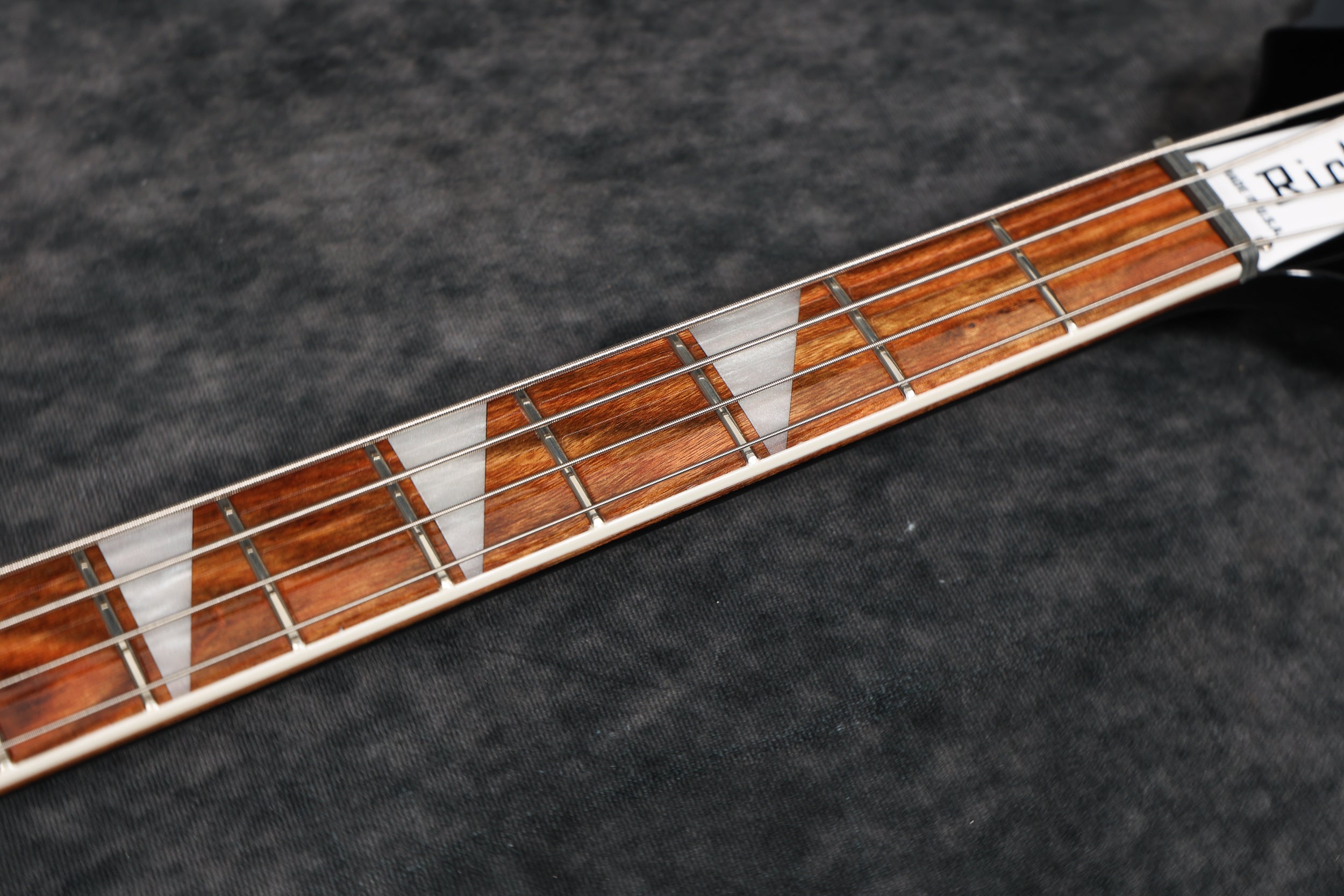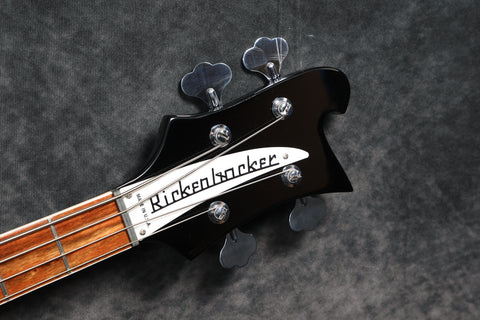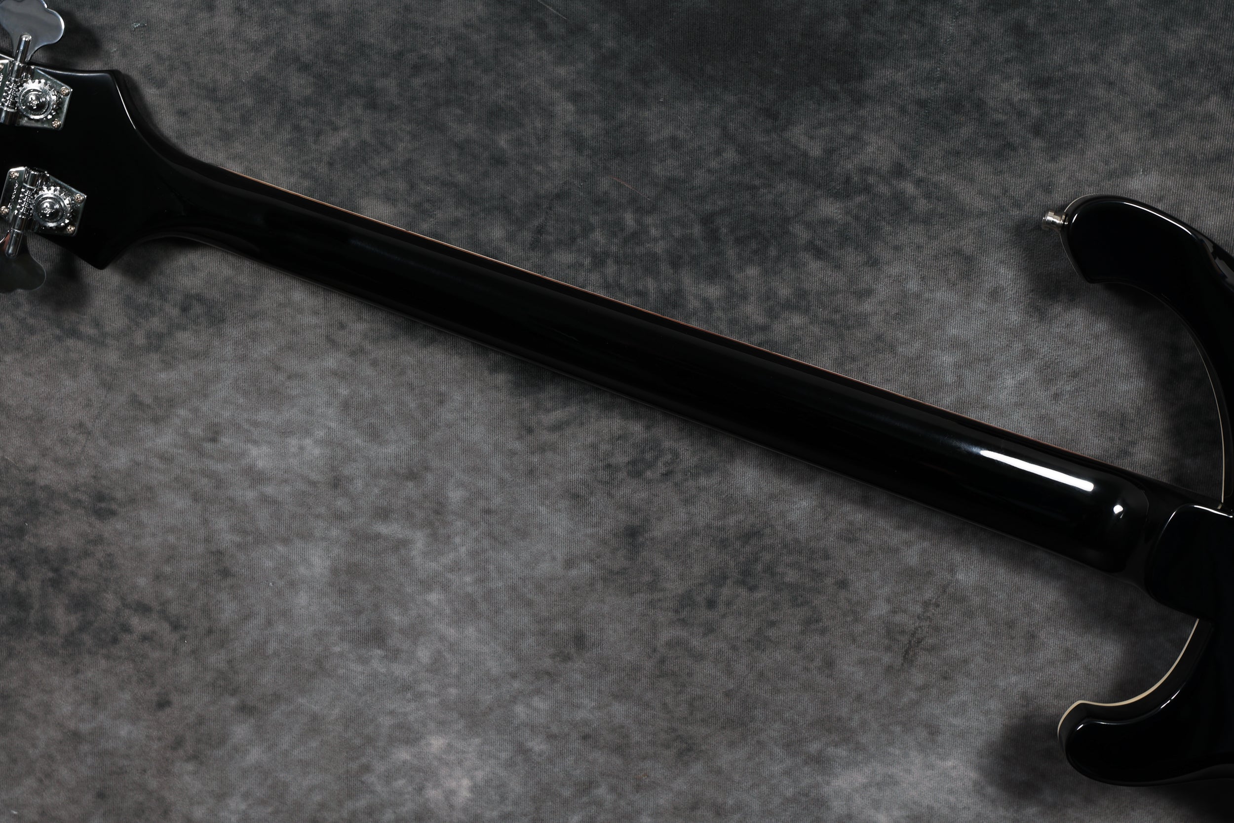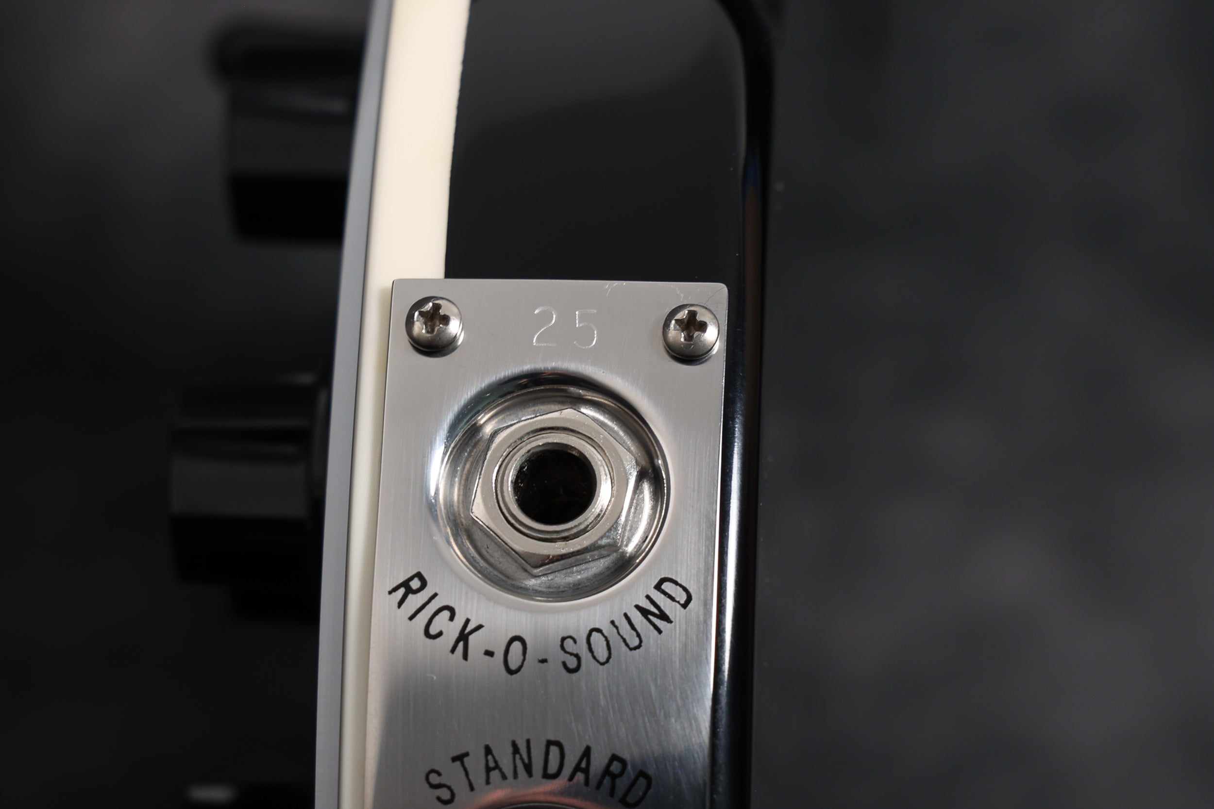 2025 Rickenbacker 4003, Jetglo finish, lacquered fingerboard. Mint/unplayed condition - you will be the first owner to play this bass. The bass pictured is in stock. This is the latest version with no pickup cover as standard. It also has the new version 2 tailpiece and bridge, and a slim-profile neck with a double-action single truss rod. Weight 9 lbs 8 oz / 4.31 kg.