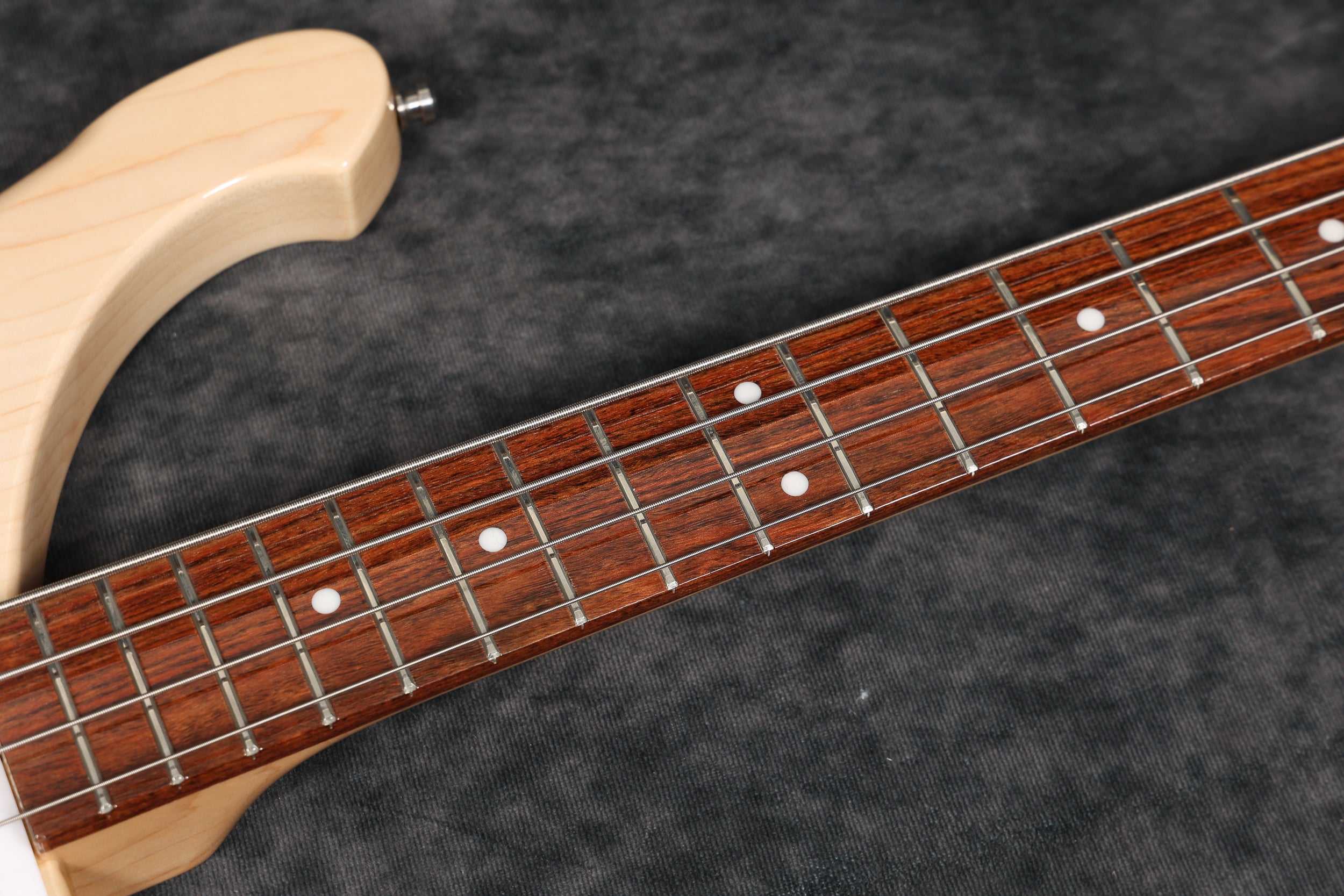 This design was once exclusive to the British distributor Rose Morris in the sixties. Iconic curves of maple form the body with a traditional Rosewood fingerboard. Dot inlays and no binding make this stand out from the standard 4003.