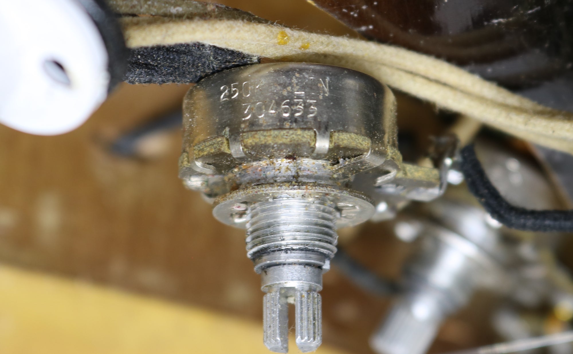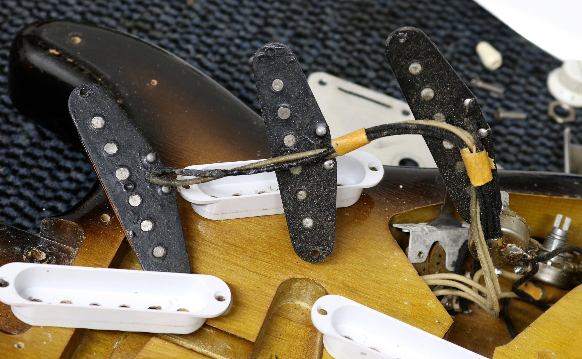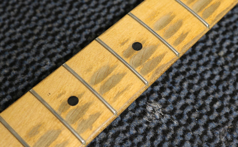 It's been fully set up in our workshop with a fresh set of strings and a great action allowing for smooth playability up and down the neck. Serial number: 13079. Weight: 6 lbs 13.5 oz. Nut width: 42mm. Depth at the 1st fret: 22.25 mm. The pencil dates on the body and neck are 12/56 and 1/57 respectively. All original electronics with untouched solder. One pot date is covered in solder, the other two date to the 35th week of 56. The pickups have black bobbins and original winds.