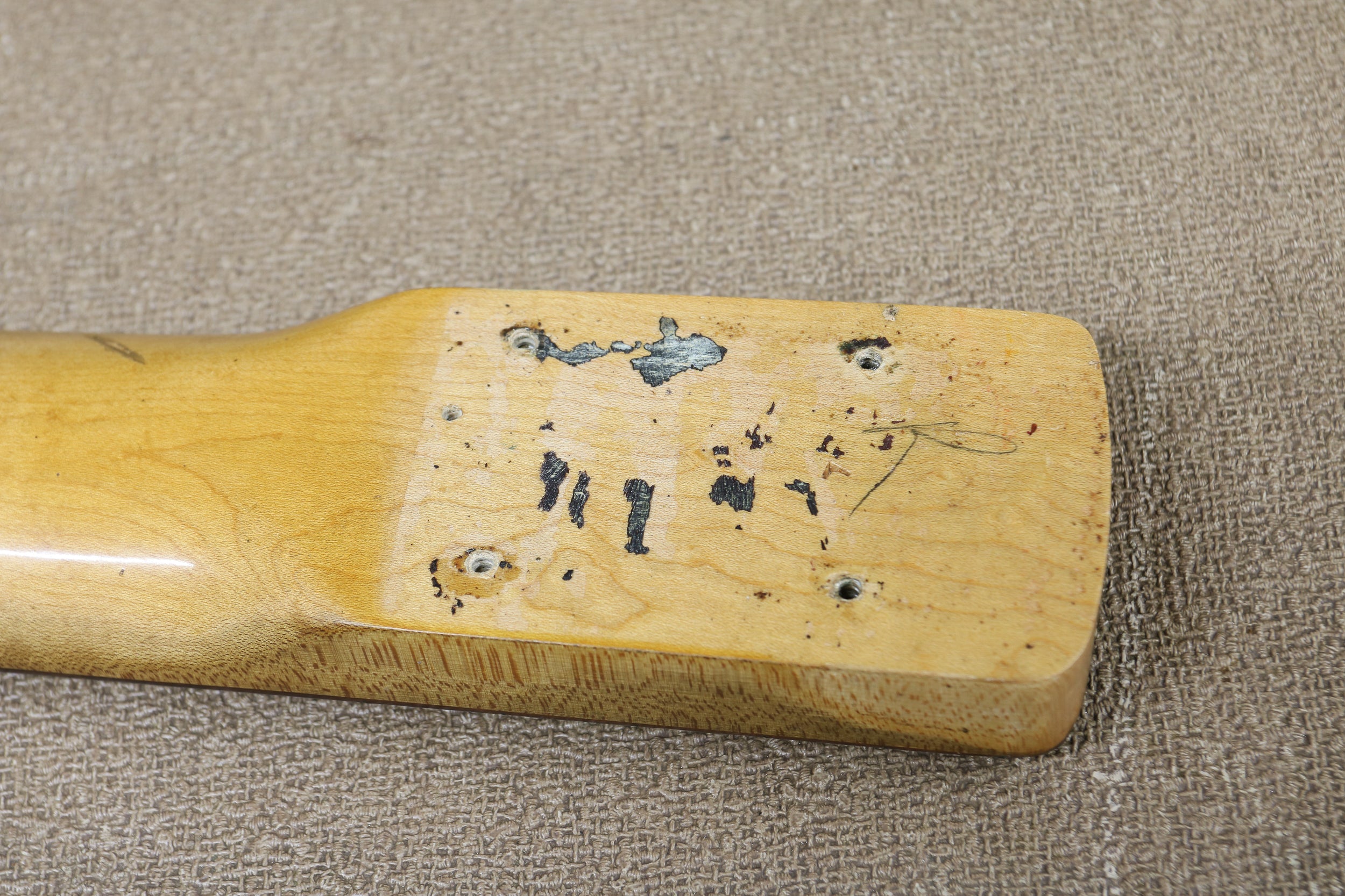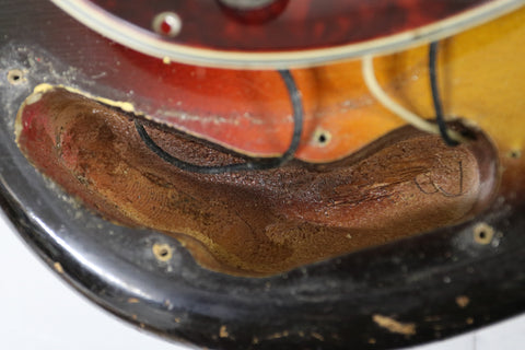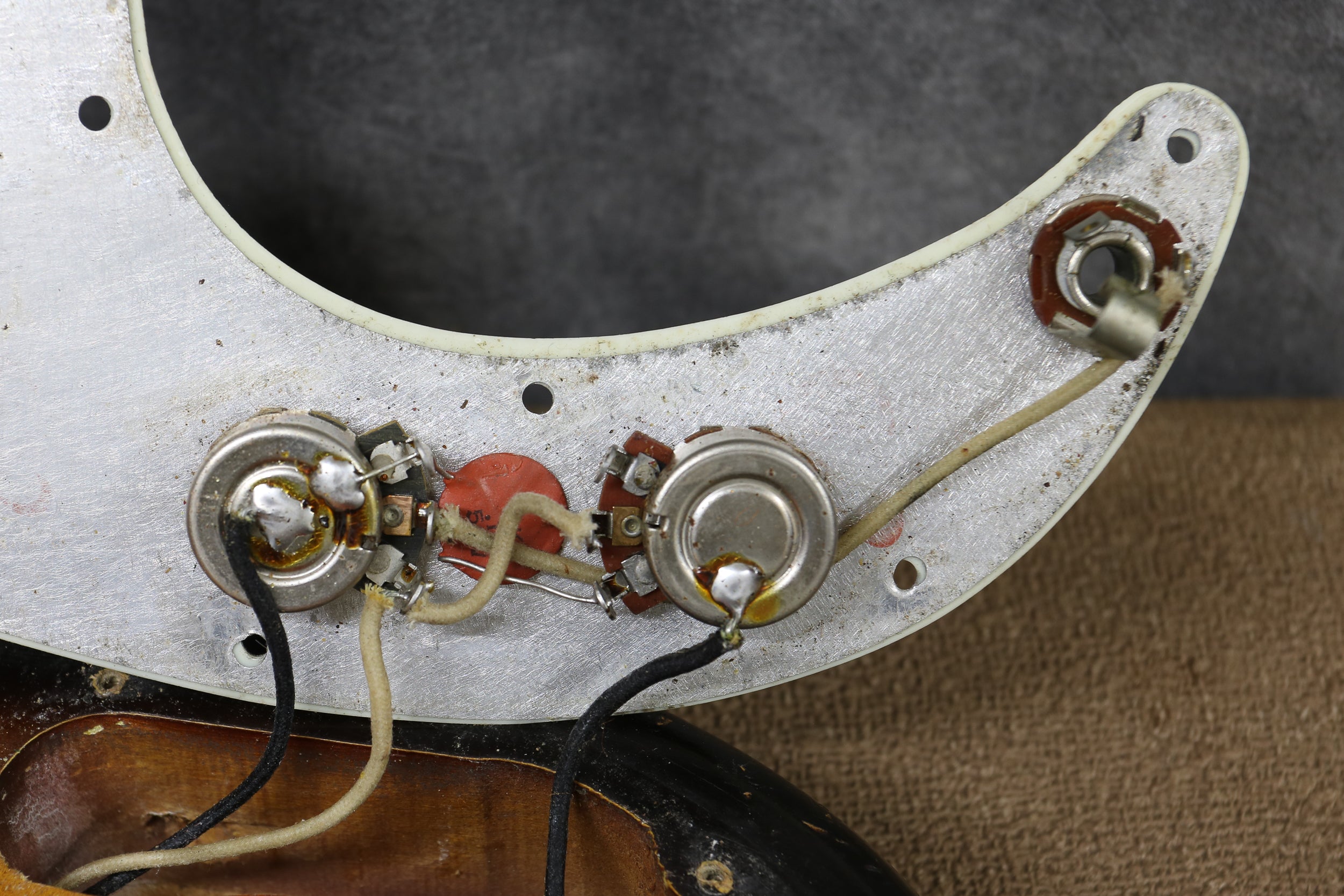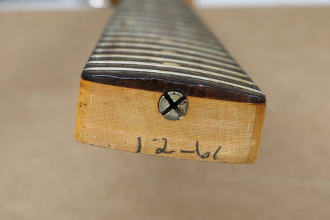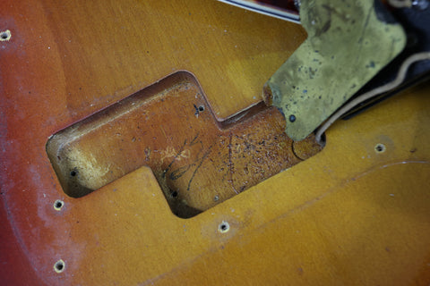 This is a fantastic playing and sounding instrument. It has an amazing neck and original frets which are in excellent condition having been dressed in our workshop. There are a number of scuffs/scratches/dings and patches of general playwear to the body finish. The back of the neck and the headstock also have some small dings/scuffs and general playwear. Everything remains structurally sound with no breaks or repairs, including the pickguard which is fully intact with minimal shrinkage.