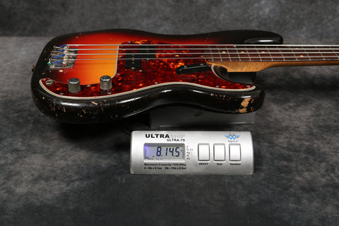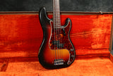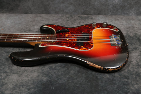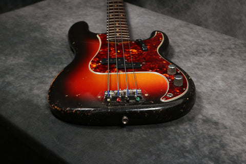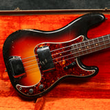 1961 Fender Precision Bass in good condition with a Sunburst finish over an Alder body. It has a wide C profile Maple neck with a beautiful dark rosewood fingerboard, a 7.25" radius and clay dots. Serial: 69252It's all original and complete including the brown tolex hard case. ( one corner of the case is being held together with gaffa tape)