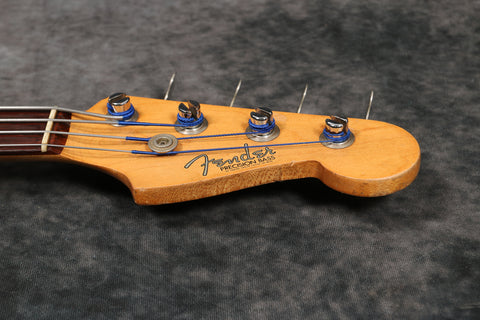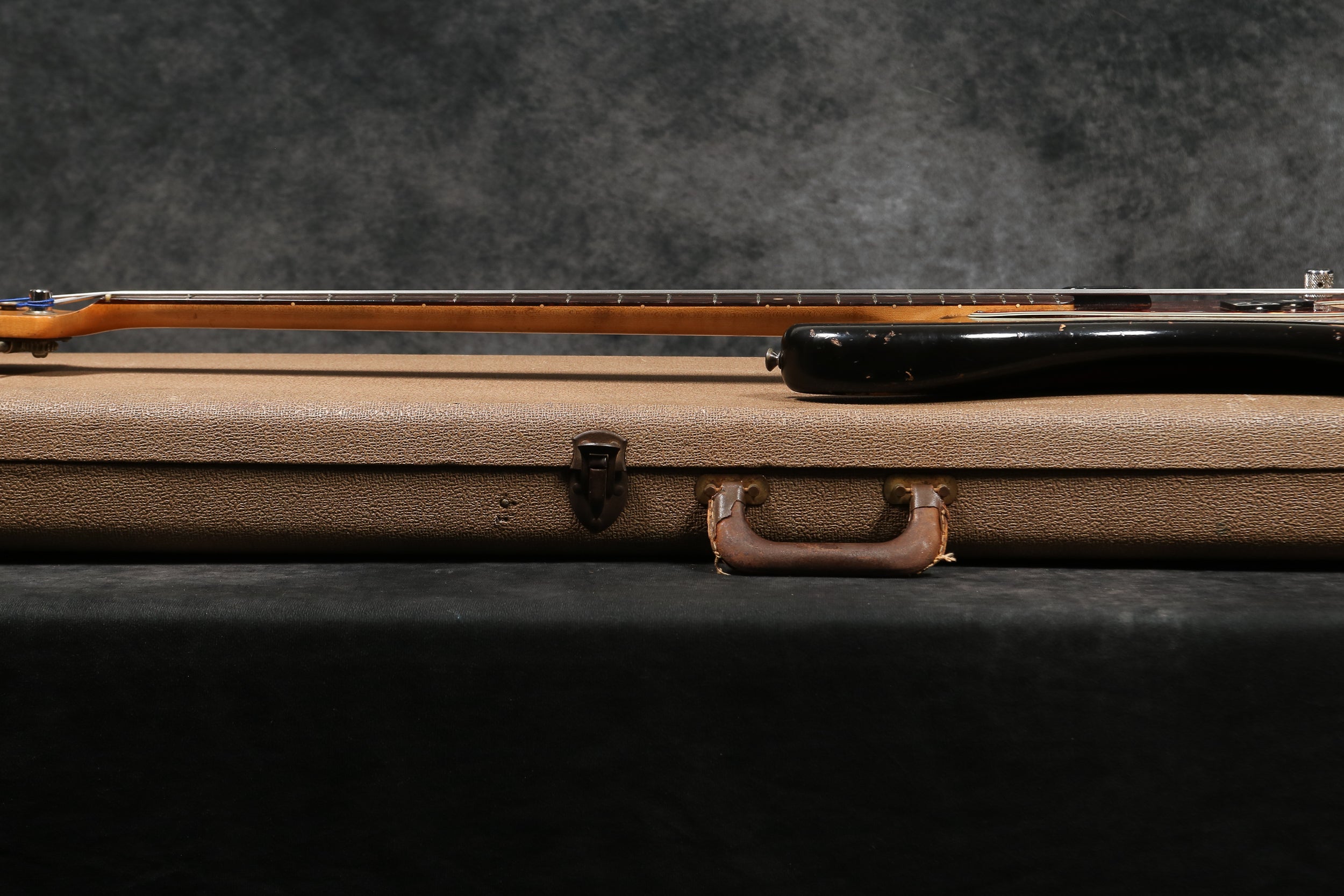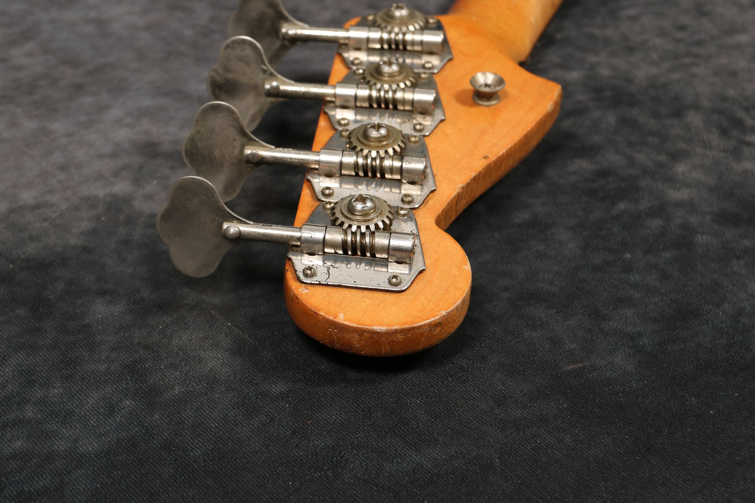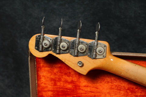 This bass has been fully set up in our workshop with a fresh set of D'Addario Chrome flat-wound strings. The neck is straight and the truss rod works correctly. The neck pencil date is 12/61, there is a pencil date in the body but we can't make out what the digits are. The tone pot dates to the 23rd week of 61 and the volume pot to the 43rd week of '61. The pickups have Black bobbins and original winds. Weight: 8 lbs 14.5 oz / 4.03 kg. Nut width: 44 mm. Depth at 1st fret: 21 mm. Pickup DC resistance: 10.54k.