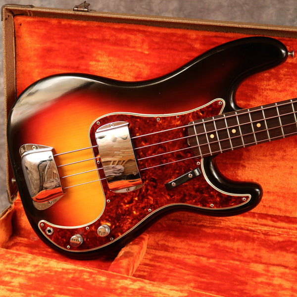 1962 Fender Precision Bass, Sunburst in exceptionally clean condition. Sunburst finish, Tortoise guard and a rosewood fingerboard. This is one of the cleanest pre-CBS basses I've seen.