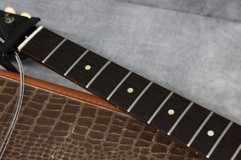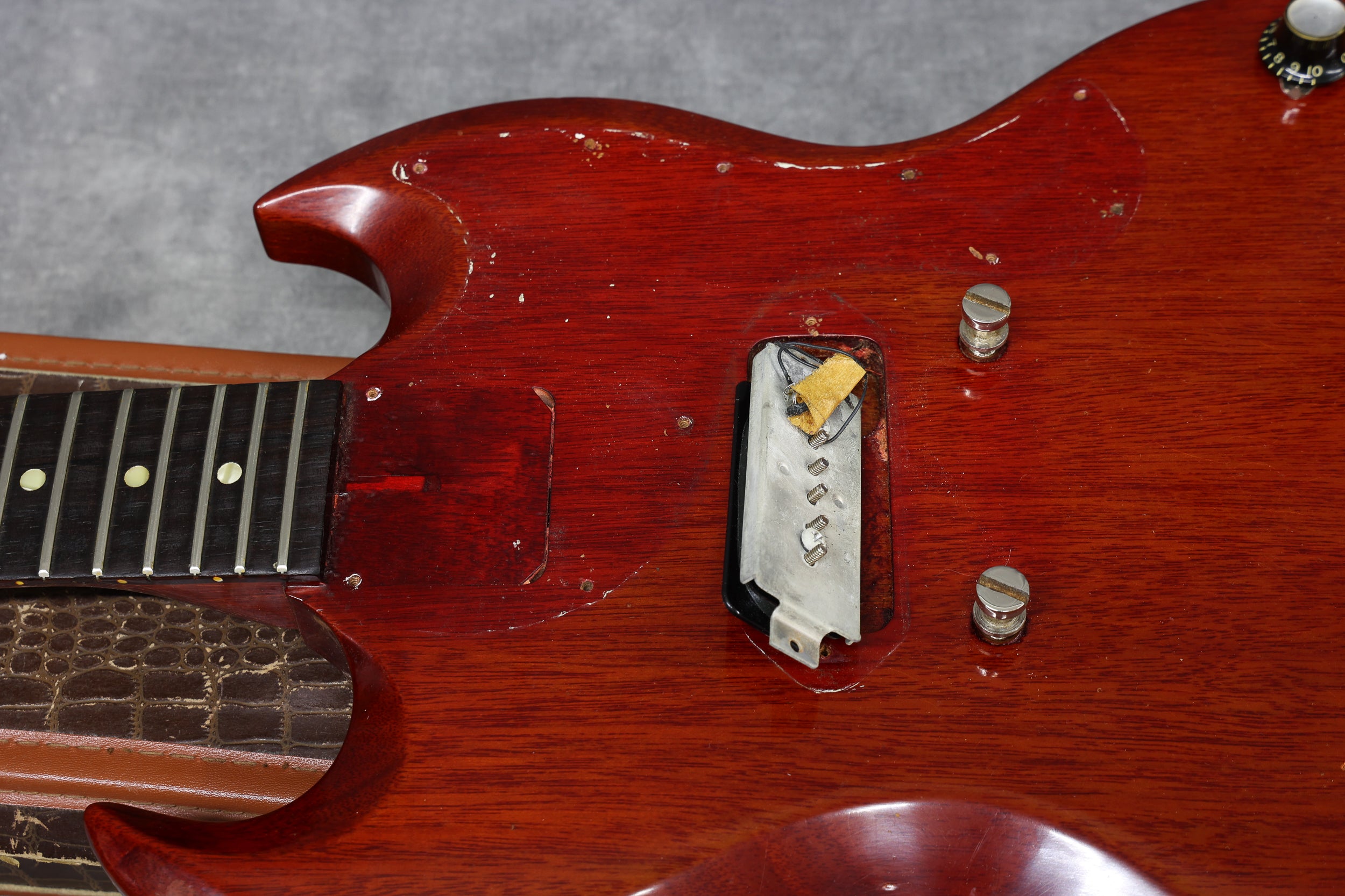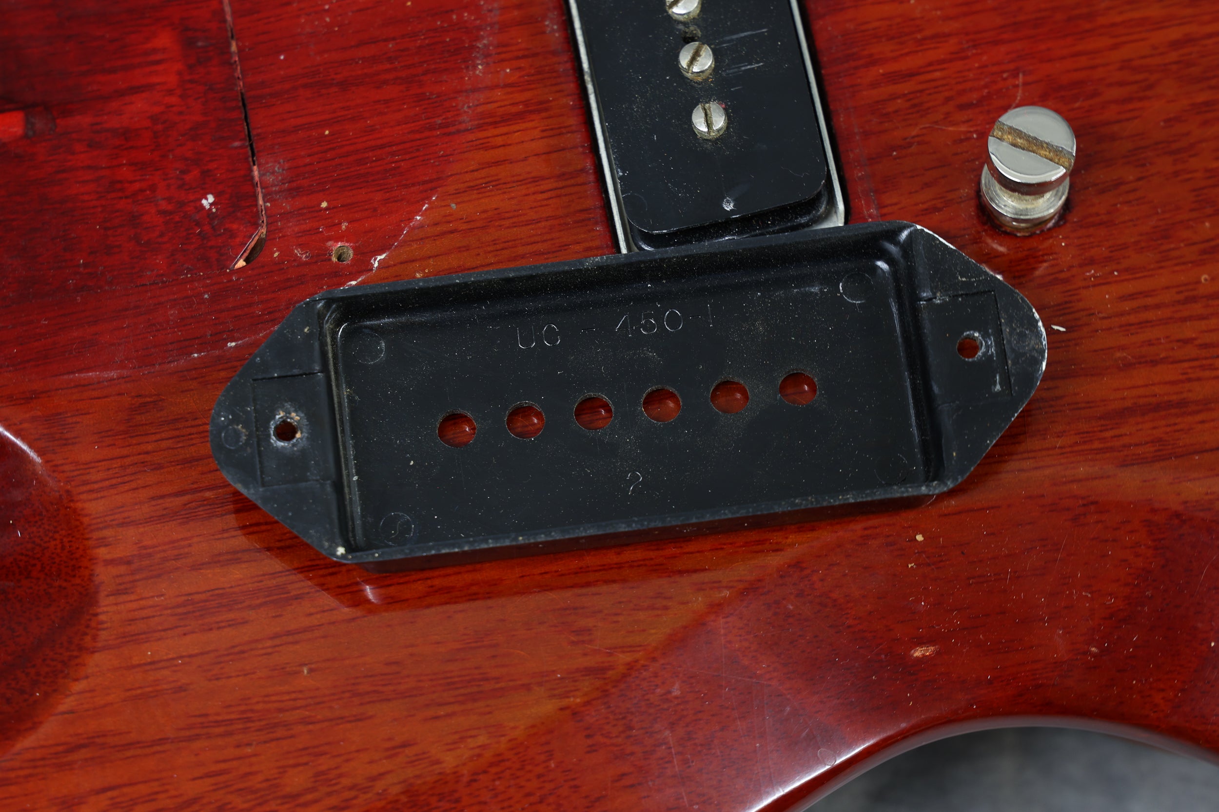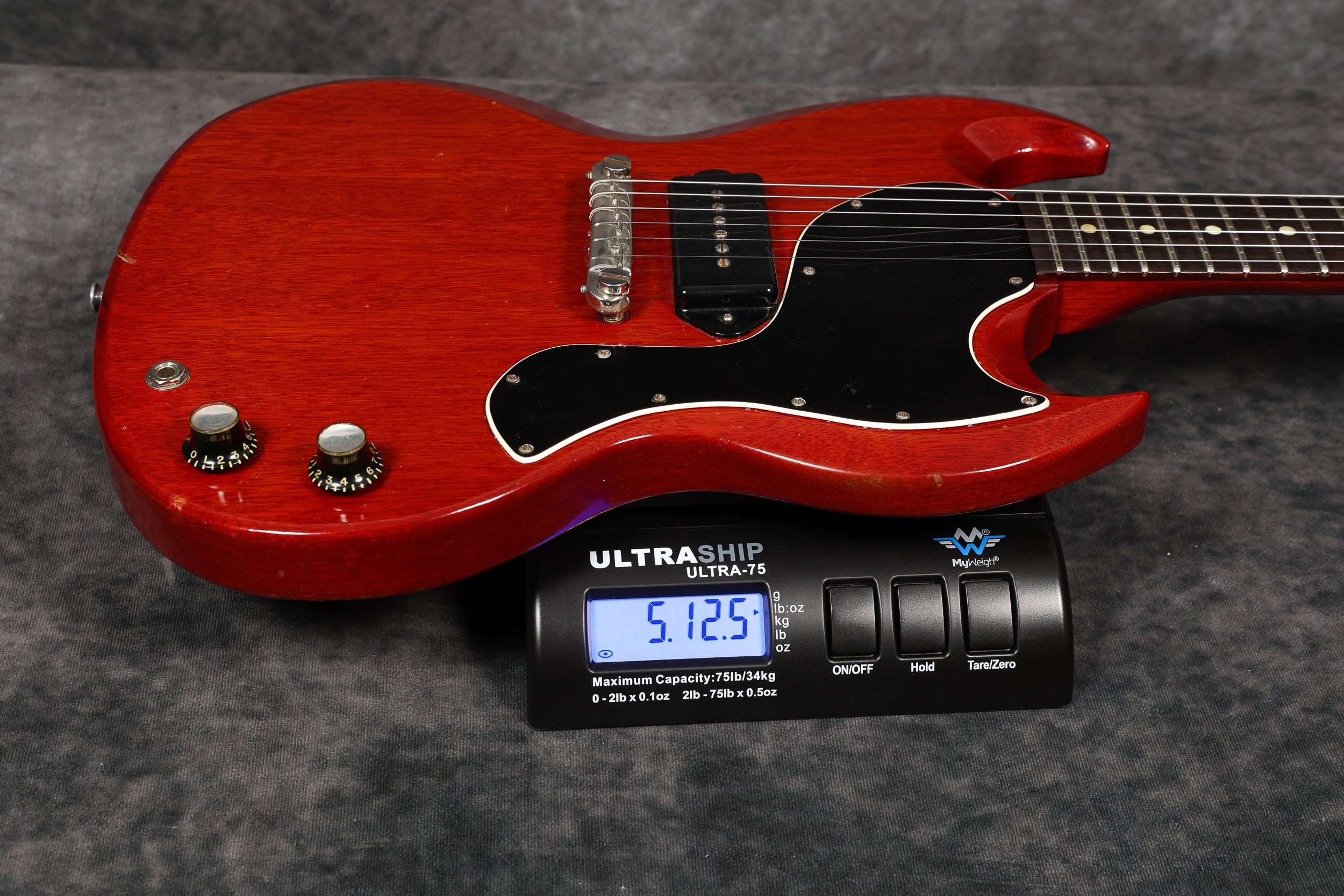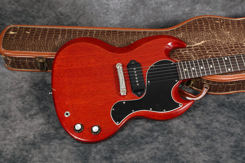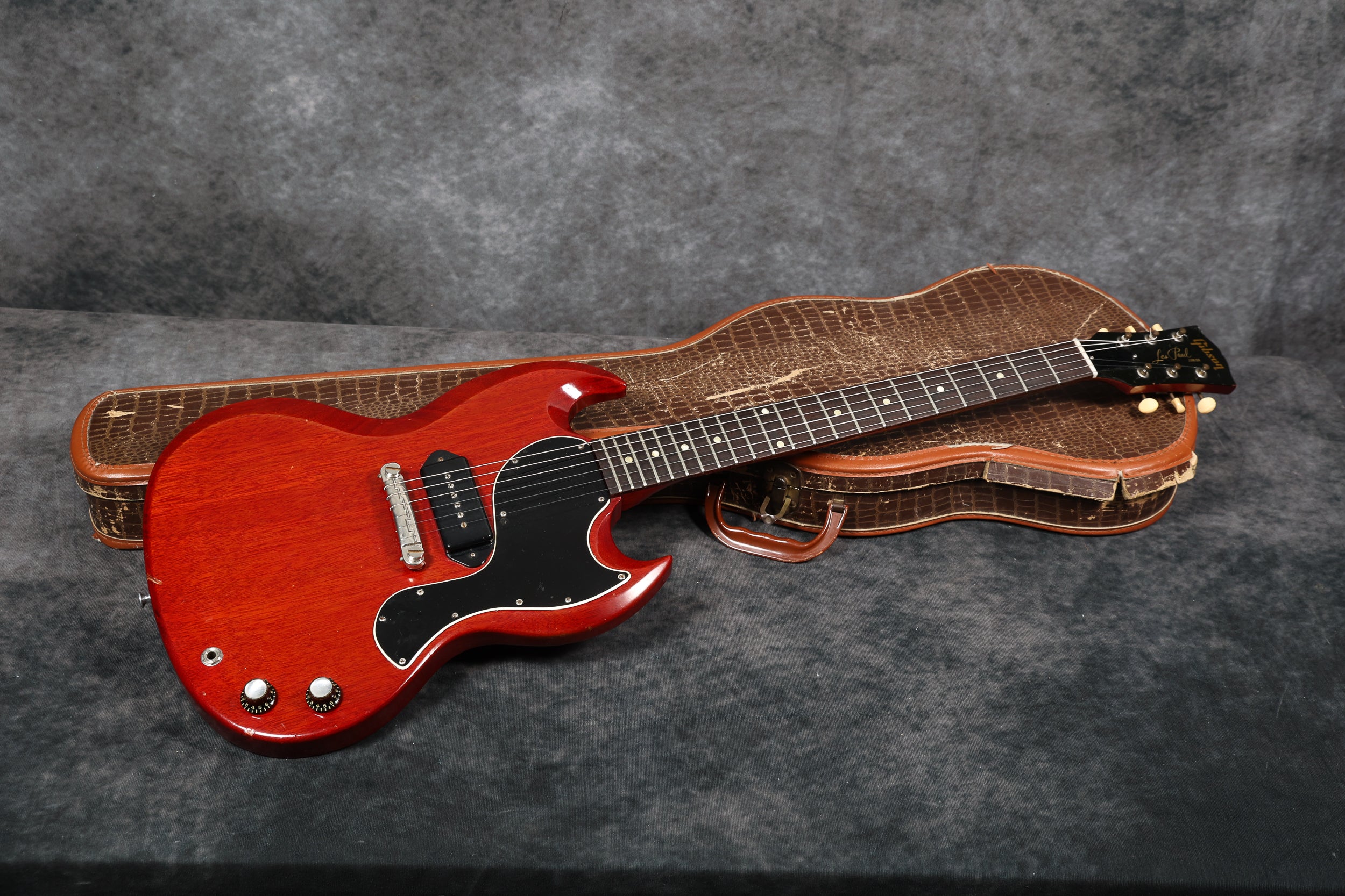 The Gibson SG Junior was introduced in 1960. The budget model of the new SG line quickly became a rock and roll workhorse. These were fitted with a dog ear P-90 pickup on a resonant, lightweight mahogany body. Matched with a stud wrap tailpiece, the clarity, punch and power made these a favourite of the indie crowd.