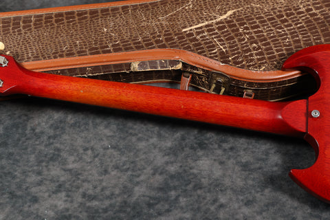 1962 Gibson Les Paul Junior, Cherry finish and nickel hardware. All original, including the Gator case. Very good + condition.