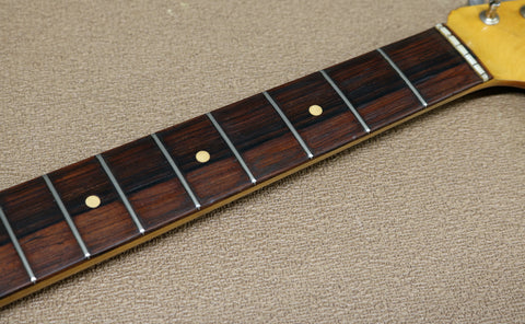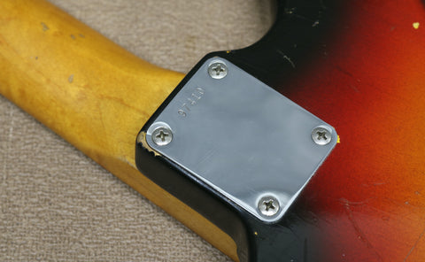 This guitar has been set up in our workshop with a fresh set of strings and a medium-low action. The neck is stamped Jan 63 B. Serial 97410. The tone pot is dates to the 9th week of 63, the volume pot 1st week of 61. There are no signs of disturbance to the solder so I can only assume this pot to be original to the guitar. Both pickups are original with black bobbins and original windings. Weight 7lbs 6oz. Nut width: 42 mm. Depth at 1st fret: 20.4 mm. Depth at 12th fret 25.2 mm. 3-month warranty included.