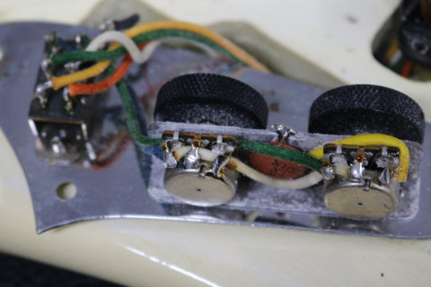 The body finish has only mild to medium wear with a few small scuffs dings around the edges. The headstock has a couple of tiny chips and some light scuffs along the top edge. The frets are in great condition with plenty of life left in them having been dressed in our workshop. The truss rod is fully functional with no issues. The back of the neck is very clean with light play-wear along the edges. All electronics and hardware are working correctly and all solder is undisturbed.
