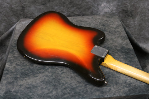 The Jaguar was launched in 1962 as another top-of-the-line guitar in the same vein as the Jazzmaster. Both guitars shared the modern offset body shape and distinct floating tremolo system. The Jaguar differed in its use of a shorter 24-inch scale length and stronger single-coil pickups, which were encased in notched covers to shield the electronics from external radio noise (a typical annoyance with the Jazzmasters soapbars).Both guitars integrated a unique dual rhythm/lead circuit design, yet on the Jaguar the lead circuit includes three switches: on-off for the front pickup, on-off for the back pickup, and a bass-cut switch that adds an extra capacitor to the signal.