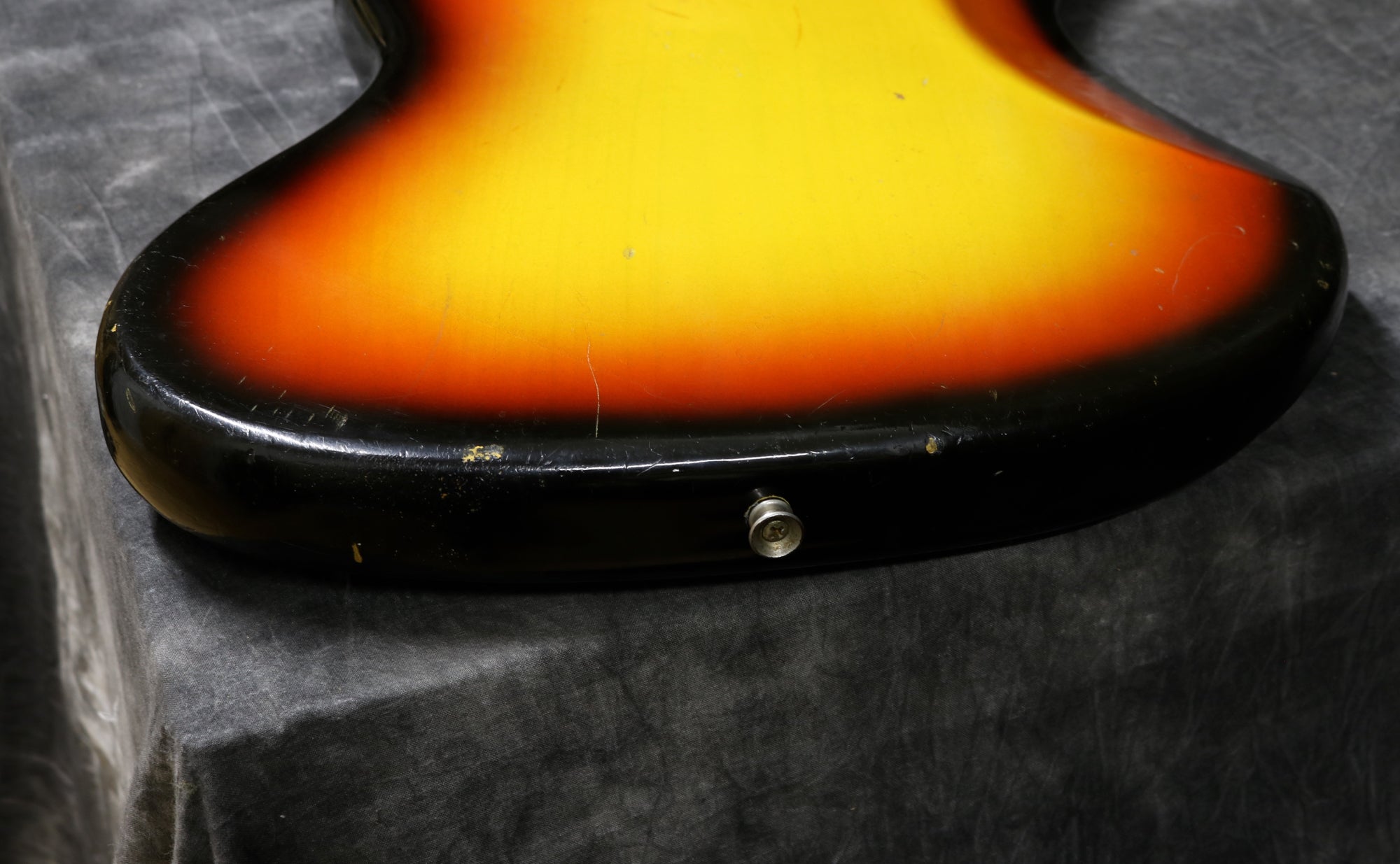 1965 L series Fender Jazz bass in very good condition. It has a nitro Sunburst finish with a Tortoiseshell guard and rosewood fingerboard. When the bass came in it had an extra wire in the control harness attaching the jack socket to the pots. This wire was unnecessary so its been unsoldered. The solder on the pots has also been re-worked. It was also missing the metal neck pickup cover. I bought a Fender reissue to go on the bass. The bridge cover is original. There is an extra screw hole in the pickguard and body from the finger-rest being re-positioned. The serial number on this bass places it in 1964 however all other parts are 65. Whilst fender serial numbers can be somewhat out of sequence I have only seen one other example of a 65 plate on a bass with Otherwise 65 parts.The serial plate has certainly been on the bass for a long time due to the patina on the back. Likewise, the neck and body have the same patina around the pocket. I would say in conclusion that whilst it is possible this plate is original to the bass, it's probably unlikely.