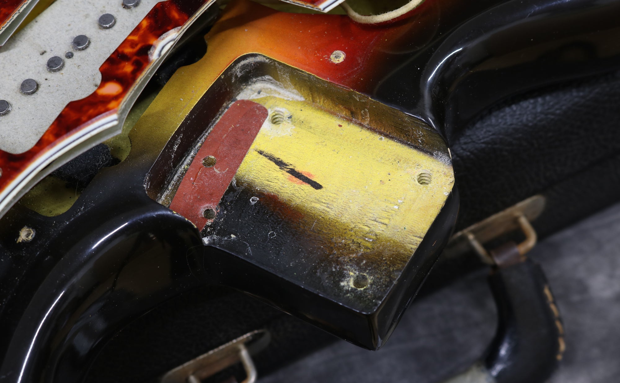 There are a few small scuffs and chips to the finish along the edges of the body. The frets have very little wear. The back of the neck and headstock have light lacquer checking in the finish and some light scuffs and dings around the edges but nothing major.