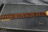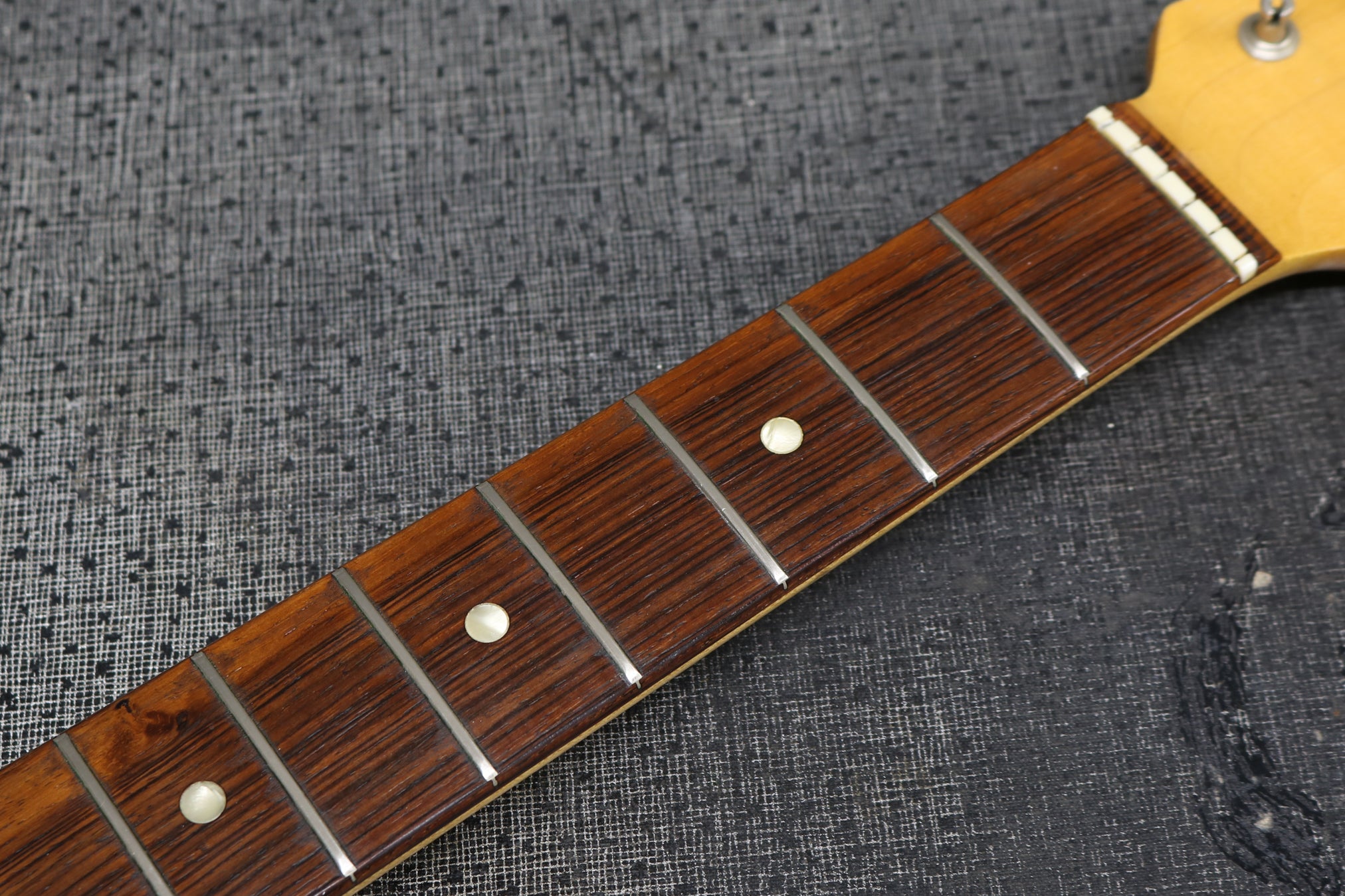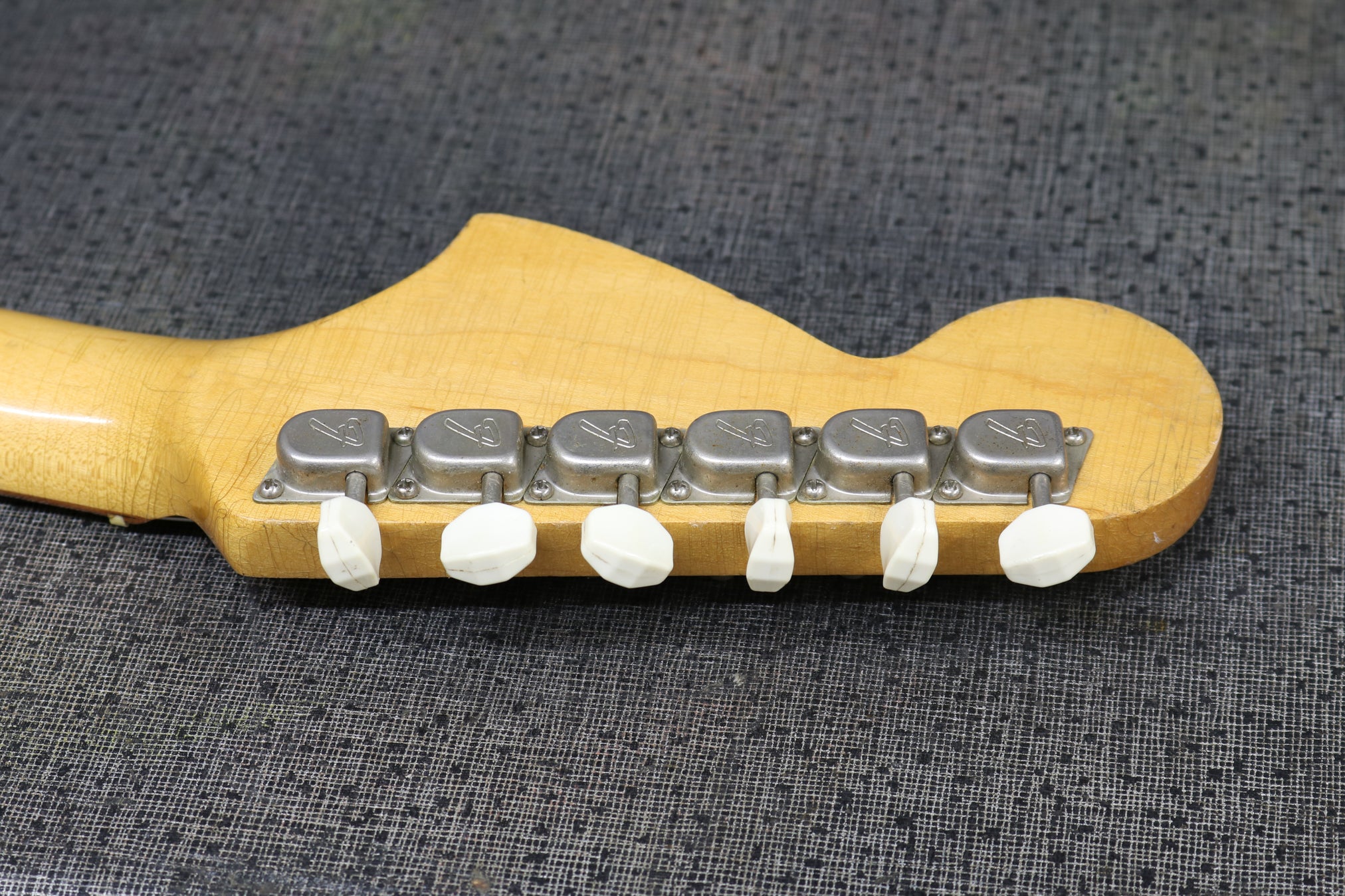 This guitar has been set up in our workshop with a fresh set of Ernie ball Super Slinky 9 gauge strings and a low action. There are no breaks or repairs, everything remains structurally sound and the truss rod works correctly. The neck is stamped Feb 68 B. Serial 205273. Both pots date to the 42nd week of 68. Both pickups have black bobbins and original winds. Weight 7 lbs 3.5 oz. Nut width: 41 mm. Depth at 1st fret: 21.5 mm.