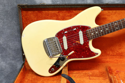 1968 Fender Mustang in good condition, Olympic White finish, rosewood board. All original including the case. 3-month warranty included.