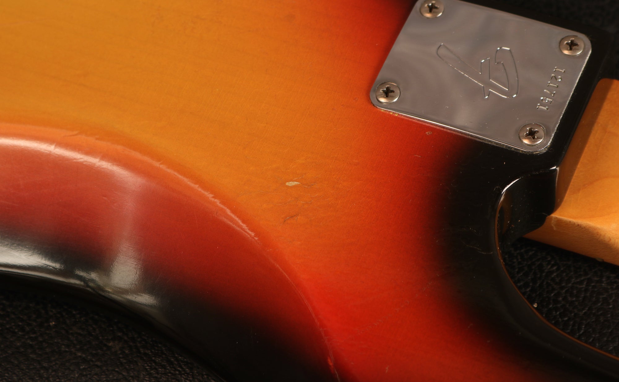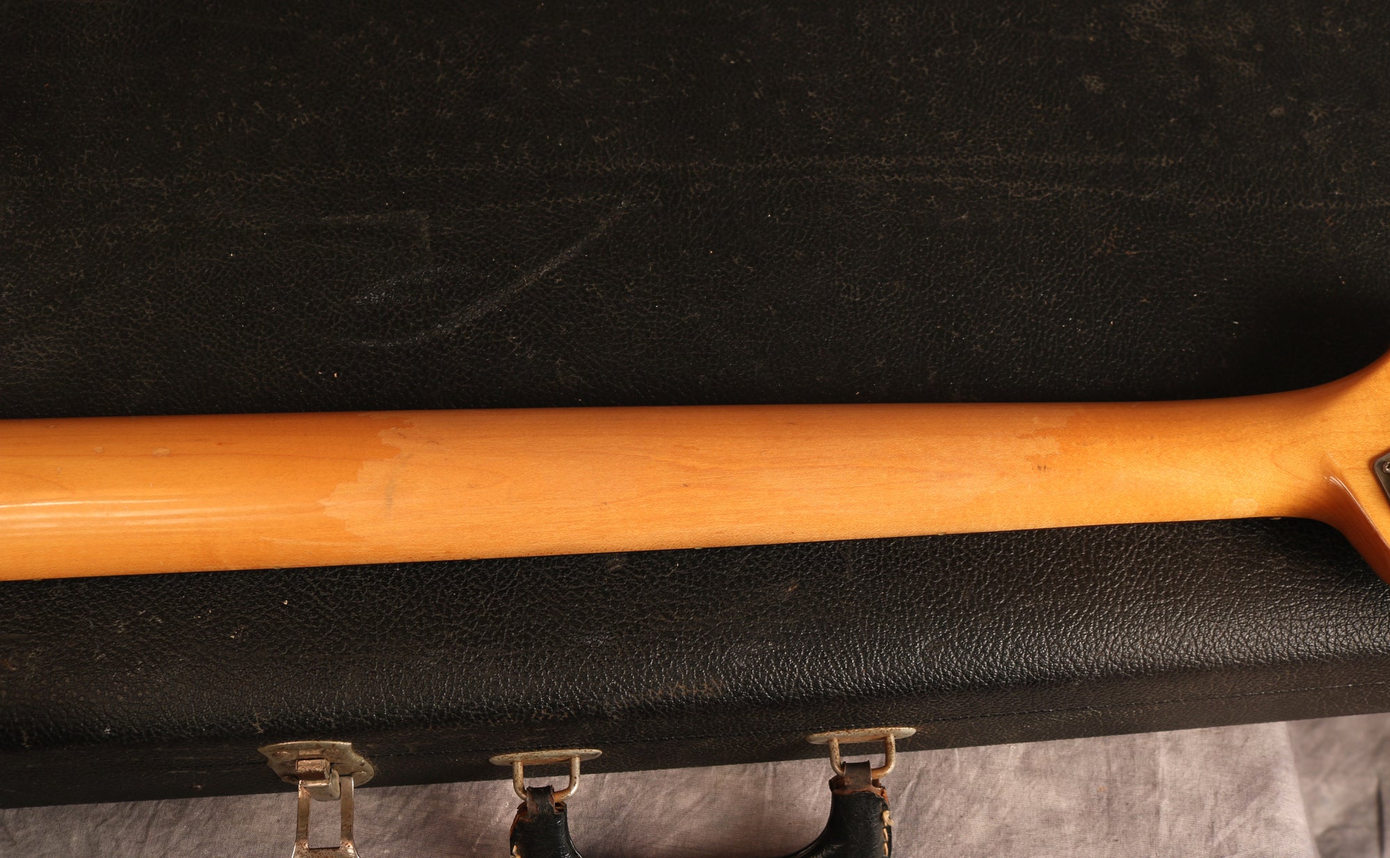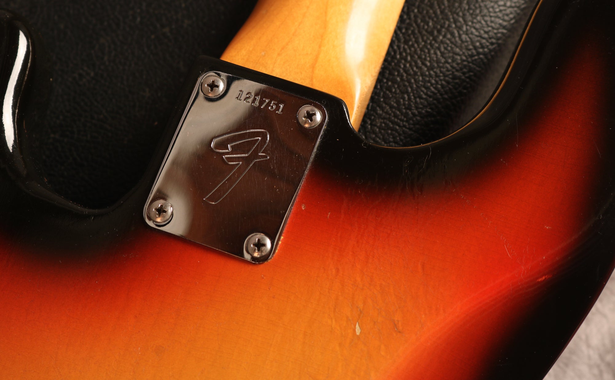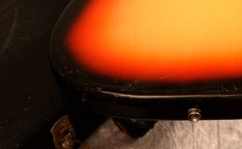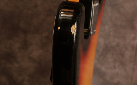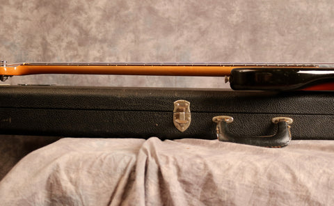 It's been fully set up in our workshop with a fresh set of round-wound strings and has a straight neck and a great action. Serial:121751. The neck stamp reads FEB 66 C. Both pots are dated to 1966, only one shows the week of manufacture as the other is covered in solder. The visible pot date in full is 6607 (7th week of 66) The solder is untouched on the pots and pickups. Only one half of the pickup has a visible date as the other is covered in sponge which has gone hard and I didn't want to disturb it. The visible pickup date appears to read 3-16-66 (March 16th 1966). Nut width: 44mm. Depth at 1st fret: 21.25 mm. Weight: 8lbs 4oz.