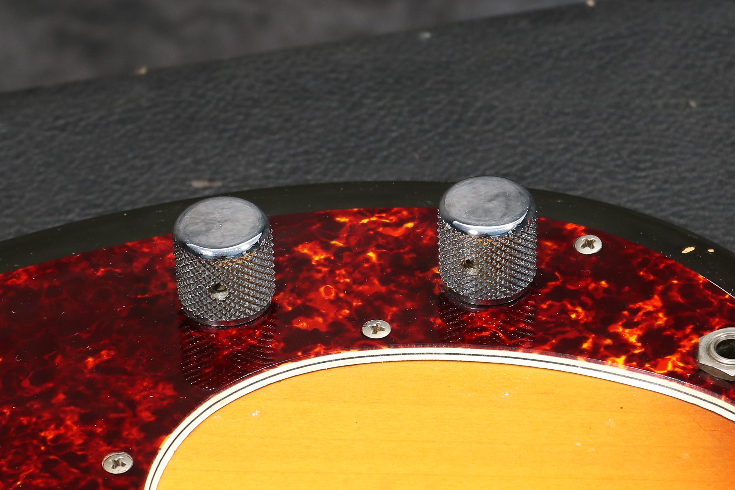 The Sunburst finish is still vibrant. There are a few very minor scuffs and tiny dings on the body but nothing major. There is some wear on the back of the lower horn which is usually the result of something (most likely a cable) being left in the case and disturbing or "burning" the finish. (sometimes referred to as curly cord burn) Otherwise, it's very clean. The neck has a lovely grain with very little wear The frets are clean and in great shape with plenty of life left in them. The headstock has a few very tiny dings around the top edge and some light lacquer checking but it is mostly free from wear. It's an all-around excellent bass, a joy to play and sounds incredible.