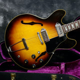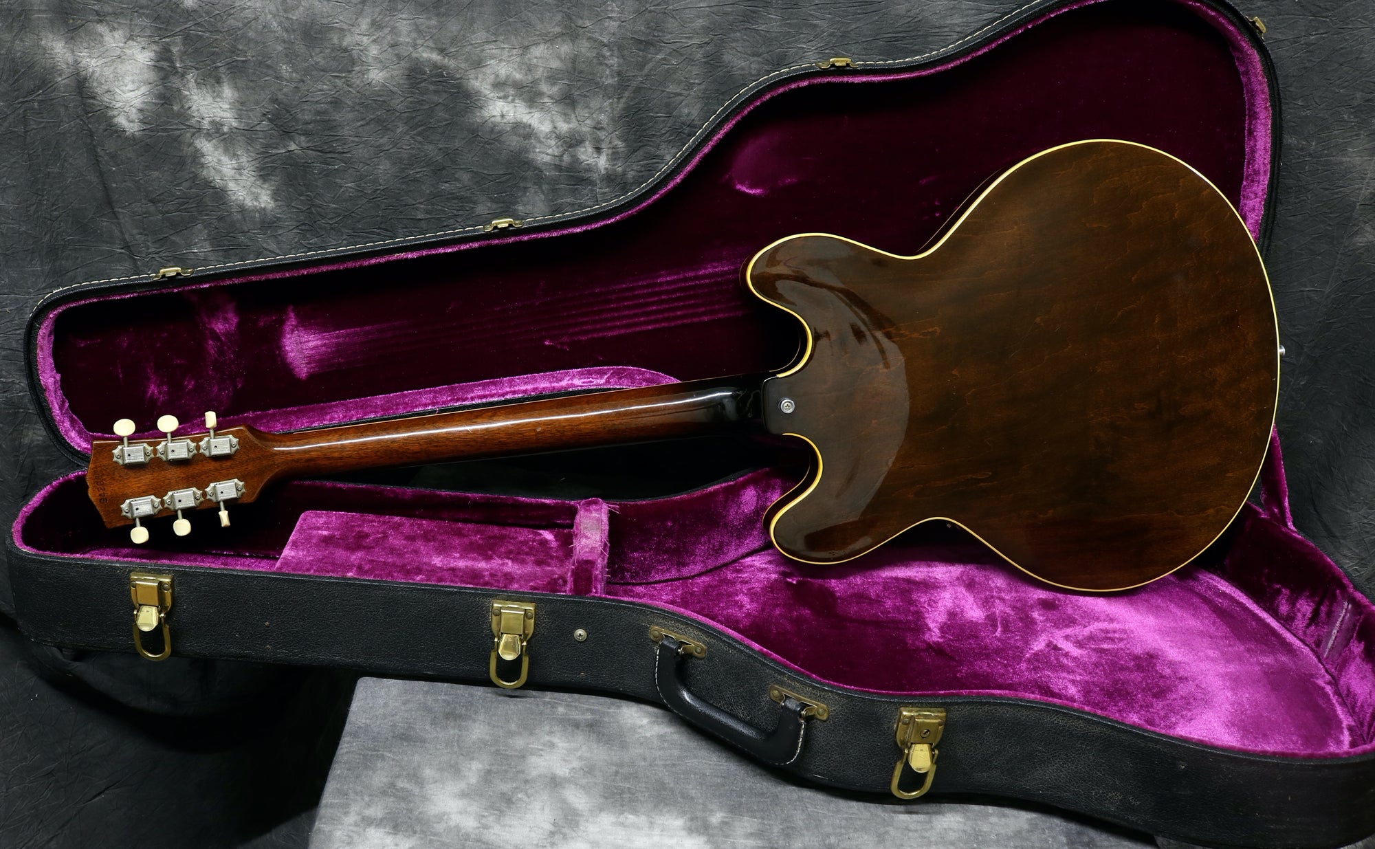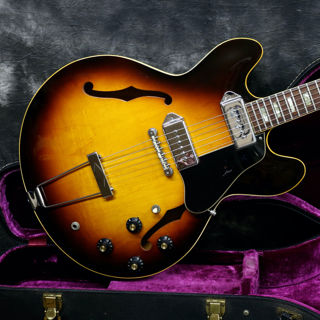 1968 Gibson ES-330 TD. Sunburst finish in excellent condition, mahogany neck with a Rosewood fretboard, block position inlays and chrome hardware. It is all original aside from the '70s Gibson case. This is the long neck version that joins the body at the 19th fret. This is preferable for ES 335 players that want easier access to upper register of the fretboard. Scale length remains the same 24.75” All features are consistent with previous years except the heel joint location to the neck.