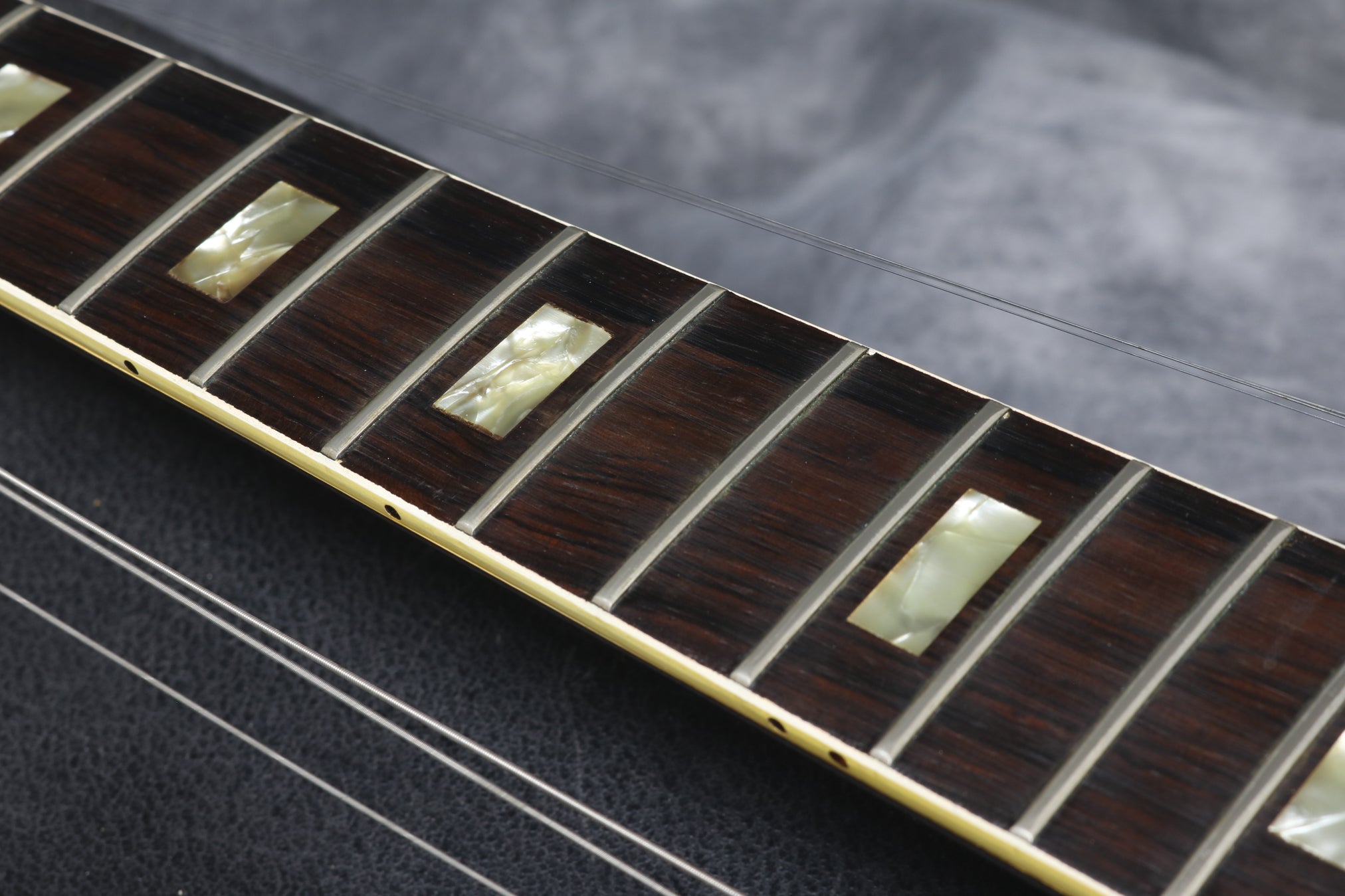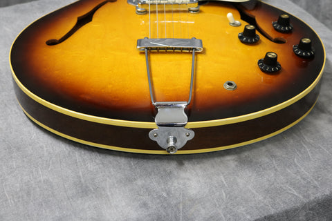 The ES-330 shares the body shape of the ES-335, ES-345 and ES-355 and is a lightweight, lively sounding guitar when played acoustically or plugged in. It's fitted with powerful P-90 single coil pick-ups which are nicely balanced. The neck and headstock are in fantastic condition with very little in the way of play-wear aside from a couple of very small scuffs. Everything remains structurally sound with no breaks/repairs. The body finish is in great shape with only a few tiny dings and some light scuffs on the back. The frets are in excellent condition having been cleaned and dressed in the workshop.
