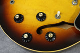 1968 Gibson ES-330 TD. Sunburst finish in excellent condition, mahogany neck with a Rosewood fretboard, block position inlays and chrome hardware. It is all original including the case. This is the long neck version that joins the body at the 19th fret. This is preferable for ES 335 players that want easier access to upper register of the fretboard. Scale length remains the same 24.75” All features are consistent with previous years except the heel joint location to the neck.